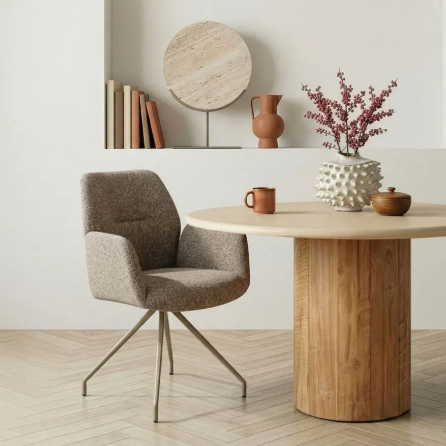 - Let op de ruimte: Vanwege de comfortabele armleuningen en diepte is het handig om te controleren of de stoel perfect onder jouw eettafel past.