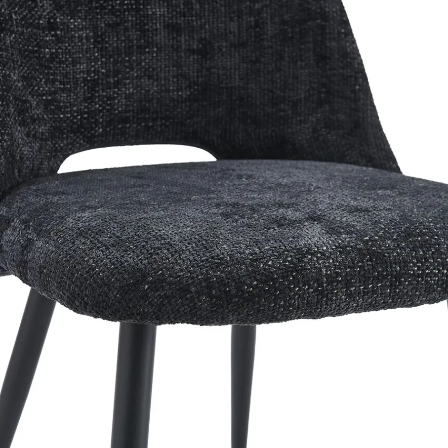 Jouw comfort staat voorop met eetkamerstoel Brogan. De stoel heeft een zithoogte van 49 cm, perfect om aan tafel te schuiven en langdurig comfortabel te zitten. De zwart metalen poten zorgen voor een stabiele basis en een modern contrast met de bekleding. Het maximale draagvermogen is 120 kg.