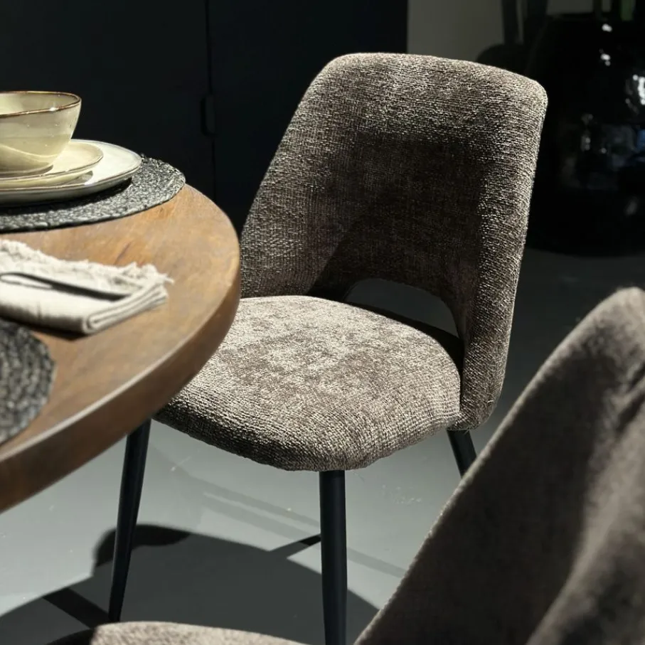 Jouw comfort staat voorop met eetkamerstoel Brogan. De stoel heeft een zithoogte van 49 cm, perfect om aan tafel te schuiven en langdurig comfortabel te zitten. De zwart metalen poten zorgen voor een stabiele basis en een modern contrast met de bekleding. Het maximale draagvermogen is 120 kg.