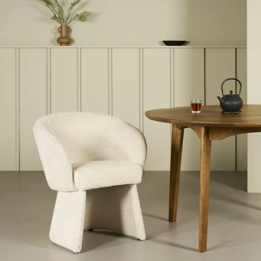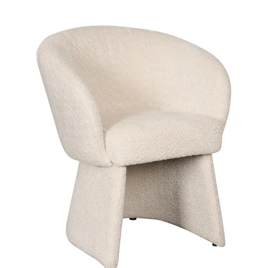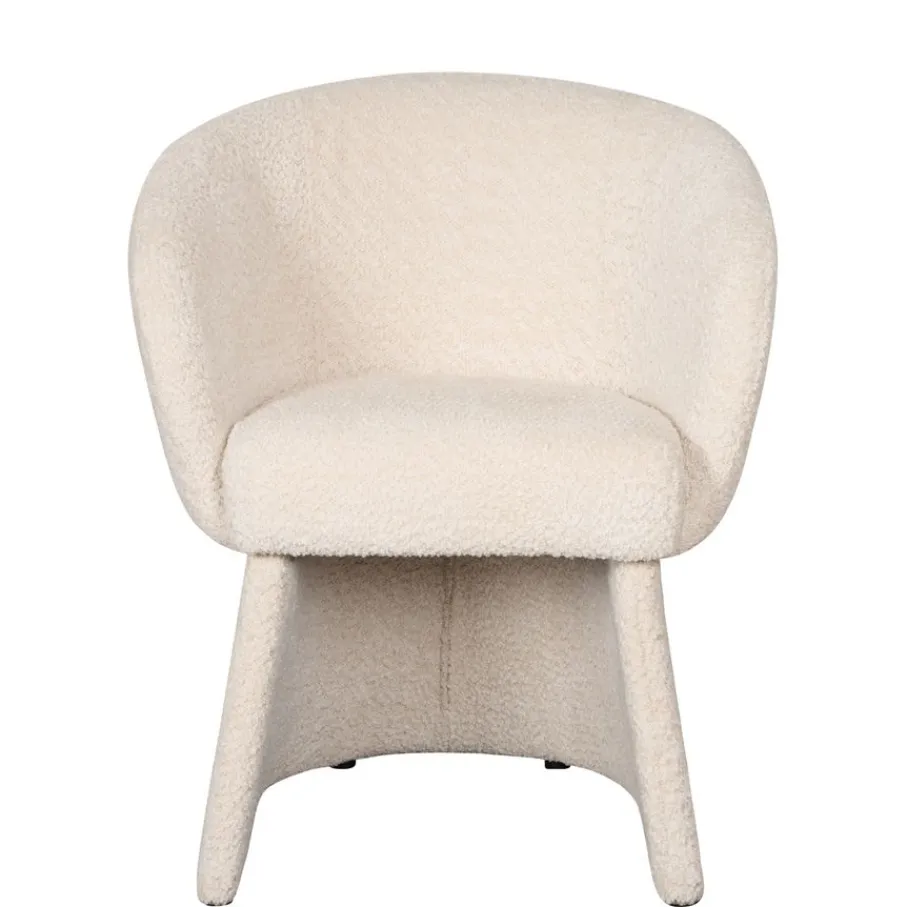 Deze stoel is volledig gestoffeerd met structuur stof Crunch. Deze stof van 100% polyester voelt heerlijk zacht aan. De mee gestoffeerde poten completeren het design. De kleur Naturel is een beige tint die makkelijk combineert in eigentijdse woonstijlen.