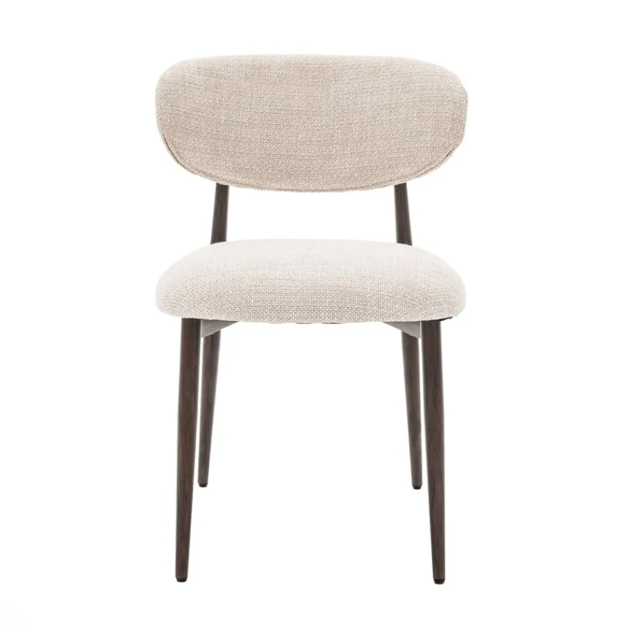 Eetkamerstoel Cleo is bekleed met een mooie, zachte stof van 100% polyester in een tijdloze beige kleur. Deze stof voelt niet alleen prettig aan, maar is ook supersterk en makkelijk te combineren met verschillende woonstijlen. Of je interieur nu landelijk, modern of industrieel is, Cleo voegt een vleugje warmte en klasse toe aan jouw eethoek.