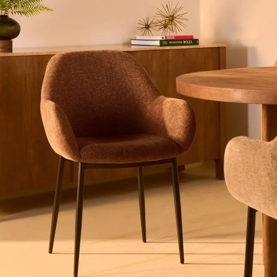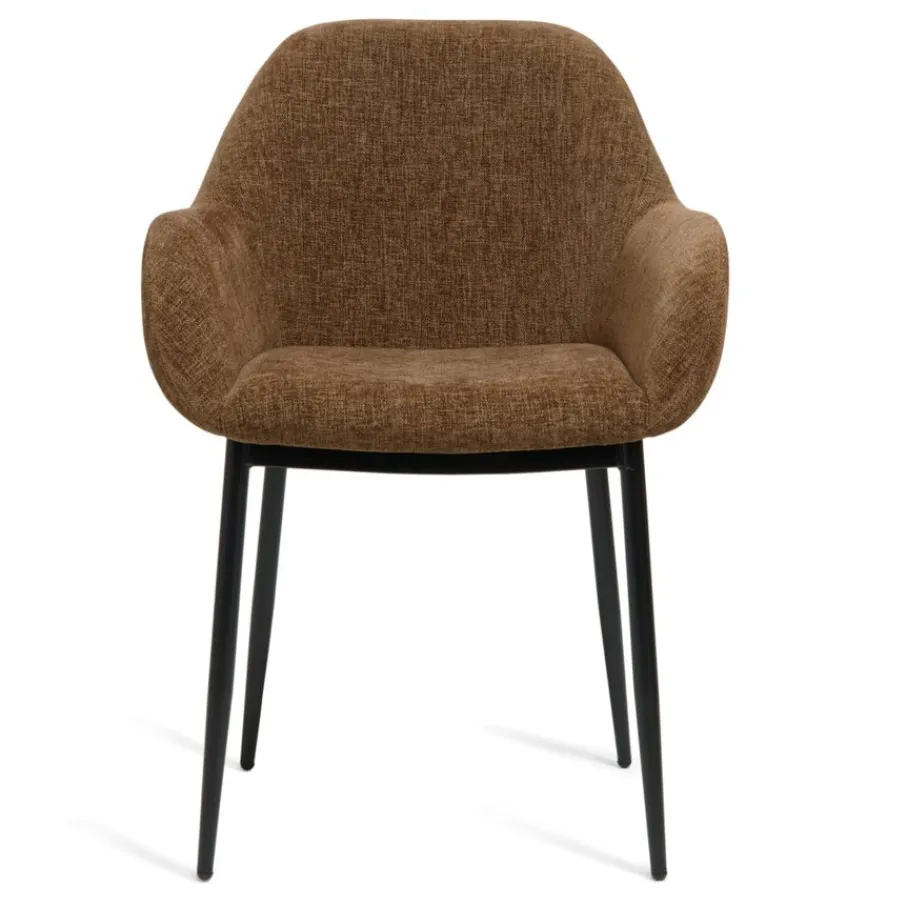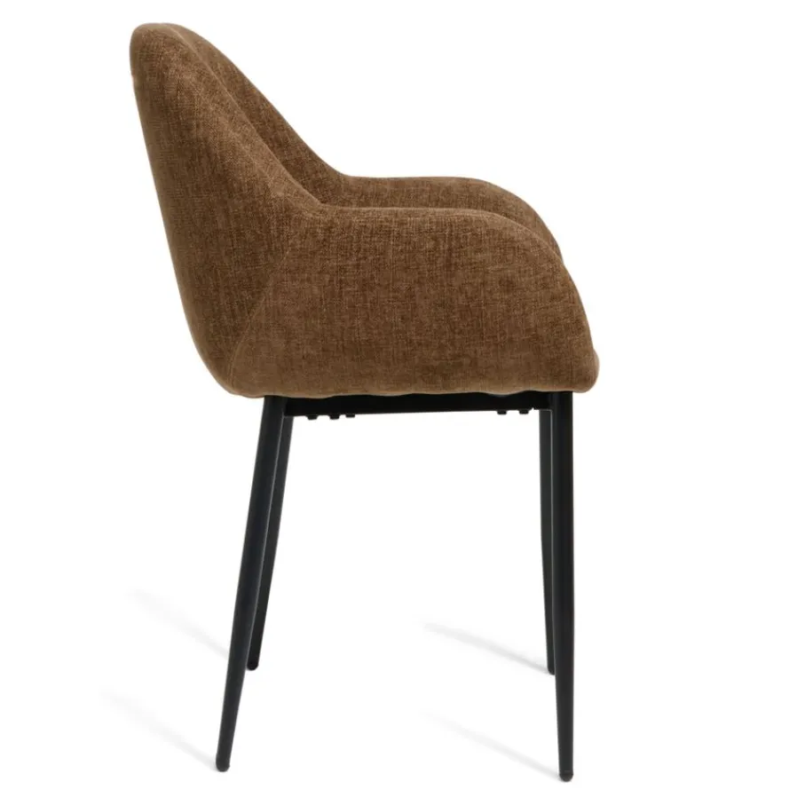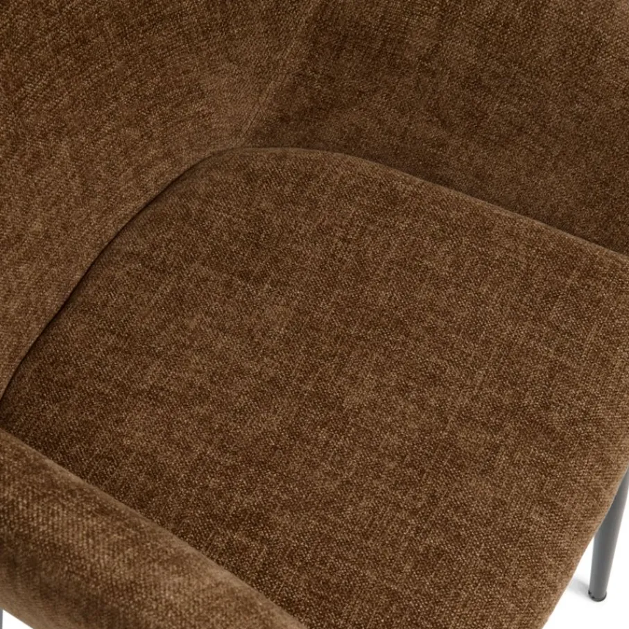 Eetkamerstoel Emma is bekleed met een chenille stof met een fijne weving. Deze verfijnde structuur voelt prettig en zacht aan, en de warme bruine kleur is een prachtige aanwinst voor je eetkamer.