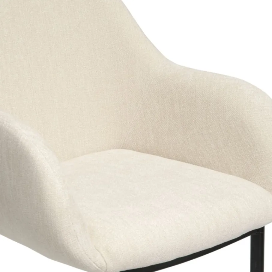 Eetkamerstoel Emma is bekleed met een chenille stof met een fijne weving. Deze verfijnde structuur voelt prettig en zacht aan, en de neutrale crème kleur is een prachtige aanwinst voor je eetkamer.
