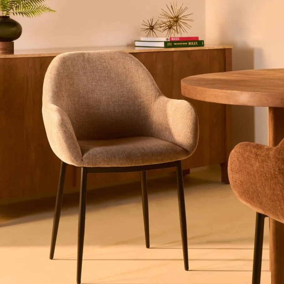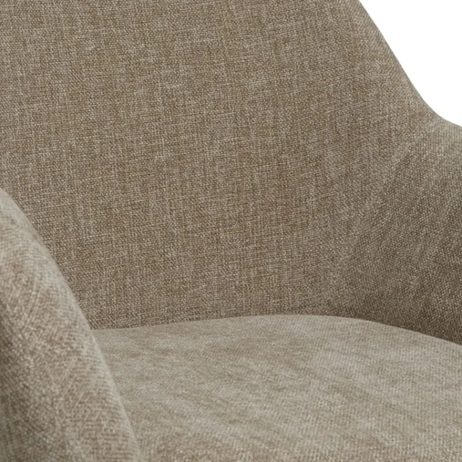 Eetkamerstoel Emma is bekleed met een chenille stof met een fijne weving. Deze verfijnde structuur voelt prettig en zacht aan, en de rustige taupe kleur is een prachtige aanwinst voor je eetkamer.