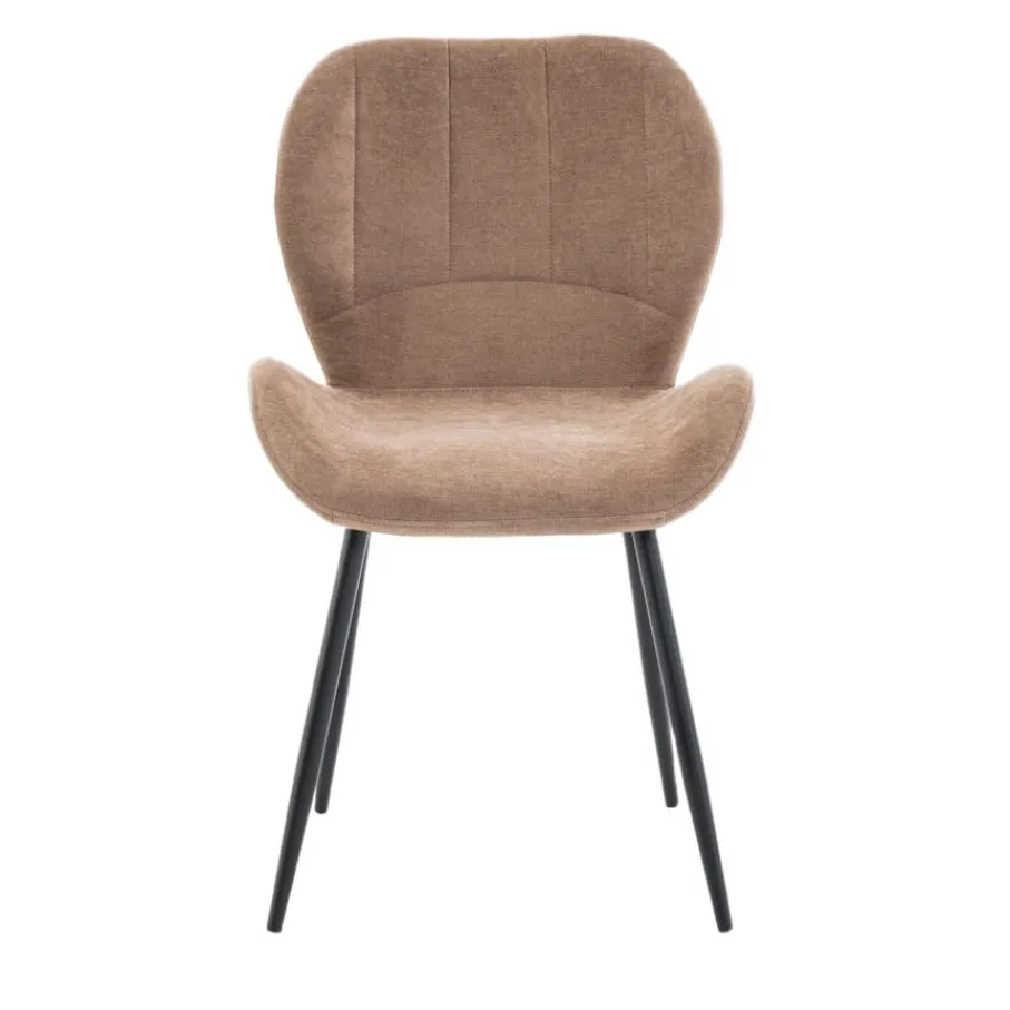 De Flor eetkamerstoel is bekleed met een prachtige taupekleurige stof. Deze neutrale maar warme tint past moeiteloos bij verschillende interieurstijlen en is bovendien prettig aan te voelen. De zwarte poten van metaal vormen een mooi contrast en geven de stoel een stoere, eigentijdse touch.