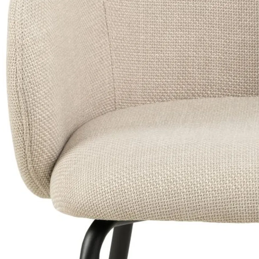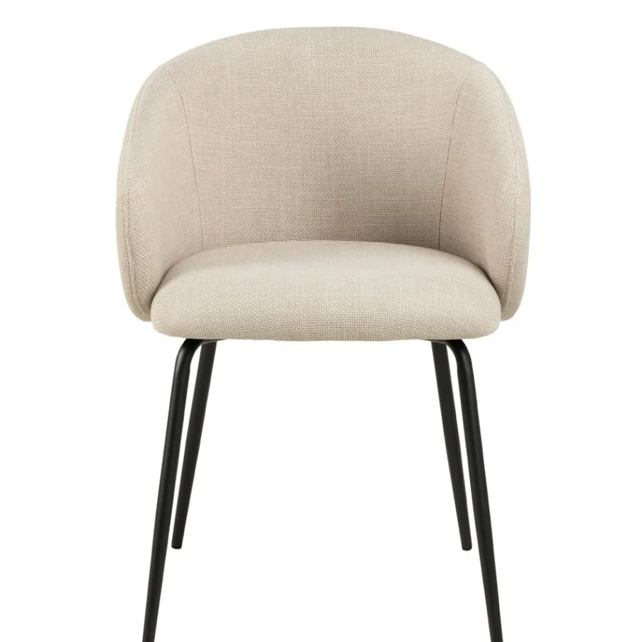 De eetkamerstoel is bekleed met stof Basel, een materiaal met een mooie geweven structuur. Een slijtvaste en sterke stof van 100% polyester. De beige kleur is warm en stijlvol en combineert makkelijk.