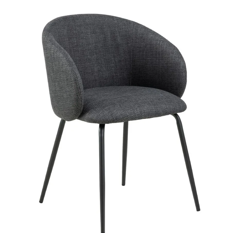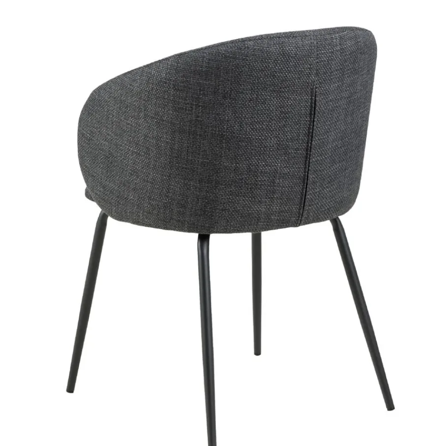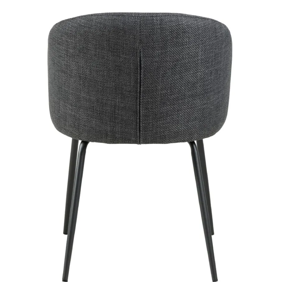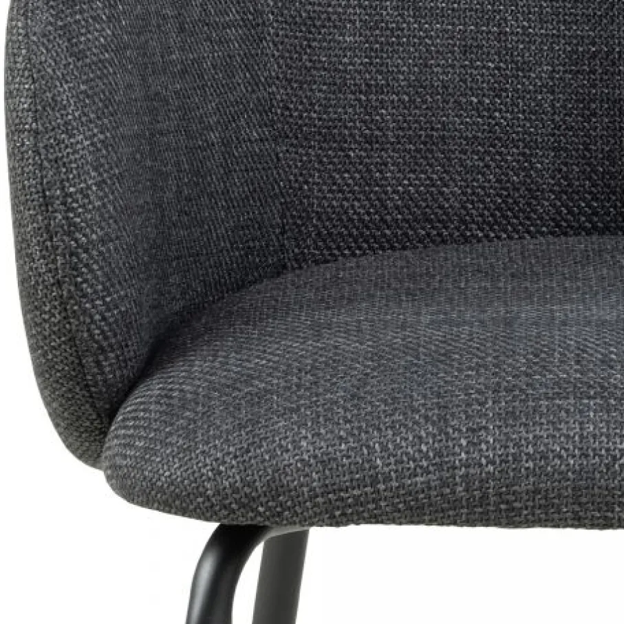 De eetkamerstoel is bekleed met stof Basel, een materiaal met een mooie geweven structuur. Een slijtvaste en sterke stof van 100% polyester. De donkergrijze kleur is modern en stijlvol en combineert makkelijk.