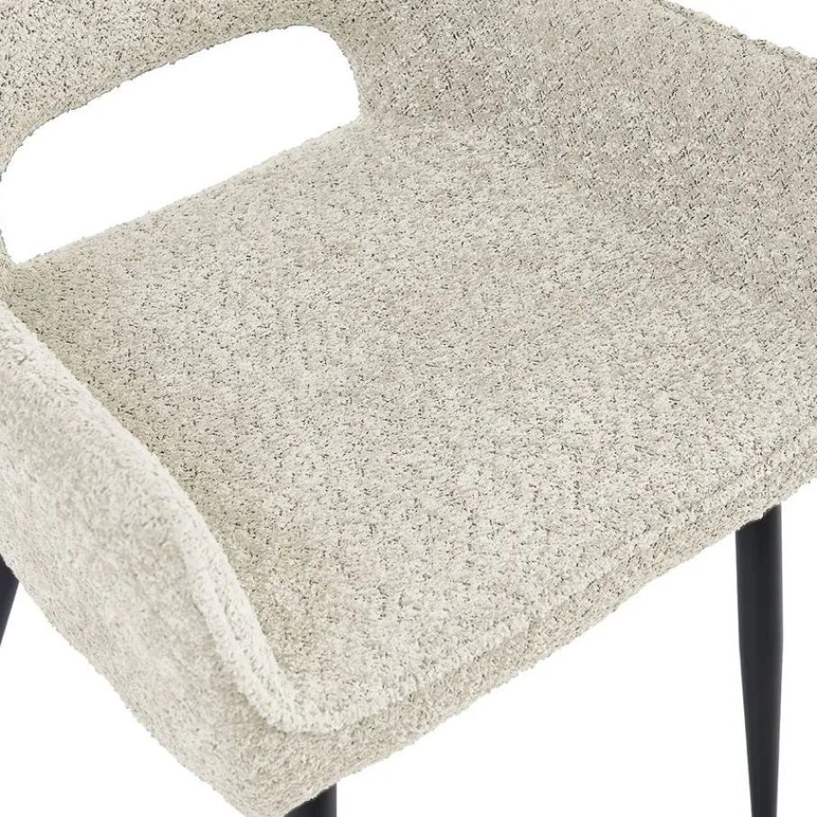 - Moderne en uitnodigende uitstraling: De weelderige stoffering en strakke zwarte metalen poten geven deze stoel een eigentijdse look die direct gezelligheid in huis brengt.