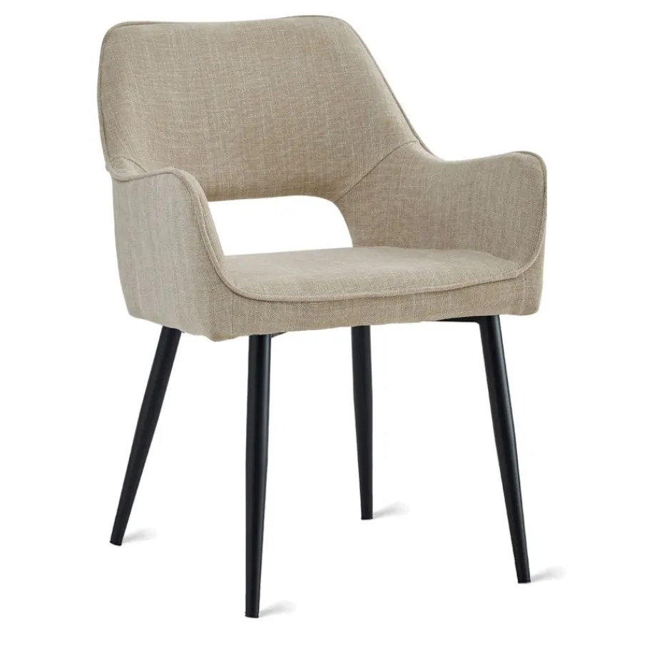 De zachte bekleding omhult eetkamerstoel Kegan en geeft je het gevoel van luxe. De stof heeft een fijne, geweven structuur en zorgt voor een sfeervolle look. De warme, beige kleur is modern en goed te combineren.