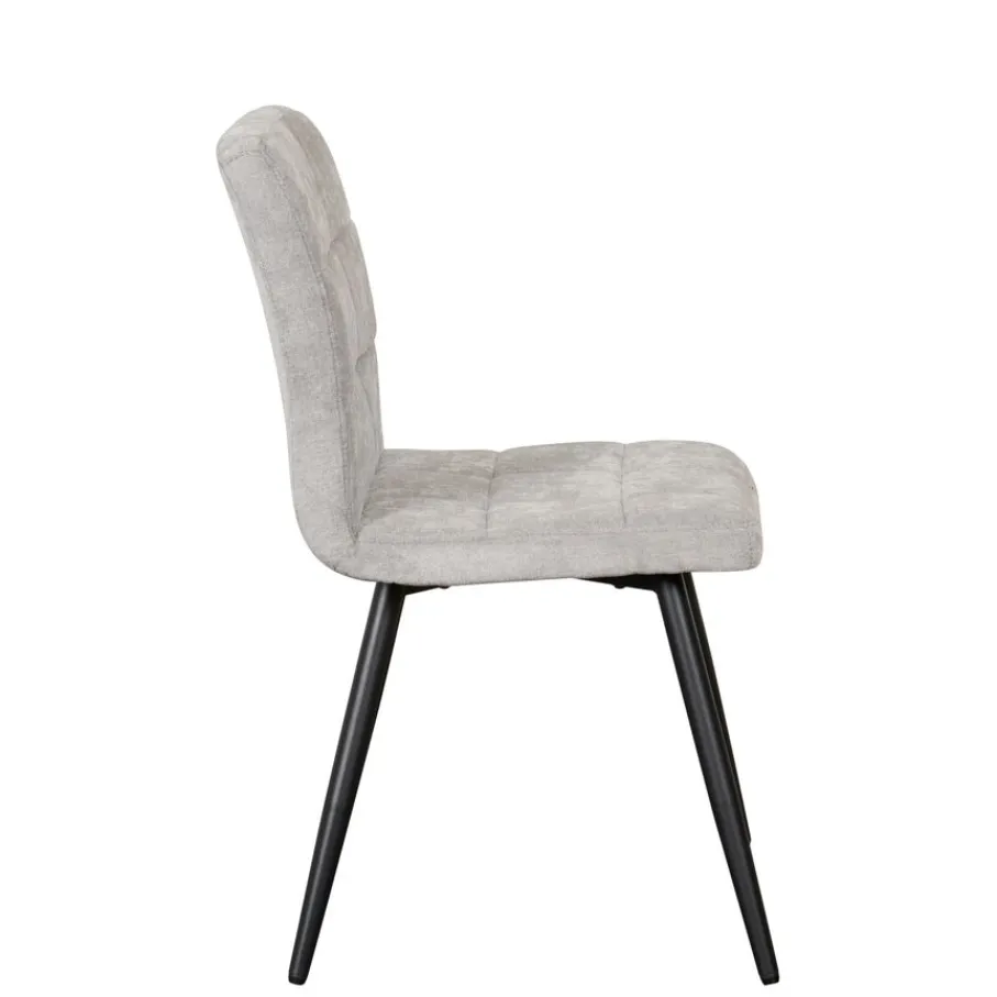 Eetkamerstoel Luik is bekleed met een luxe stof met een fijne structuur. Het materiaal voelt heerlijk zacht en comfortabel aan. De kleur Grey is een elegante grijstint die makkelijk combineert.