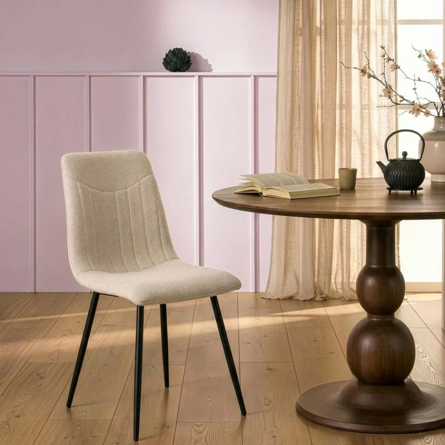 - Trendy én tijdloos design: Met de verticale stiksels en zachte beige stof breng je direct een warme en moderne touch in huis, perfect voor elke eetplek!