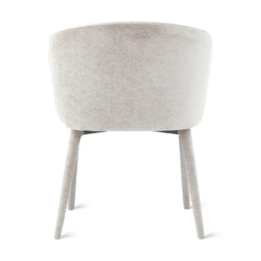 Eetkamerstoel Nour heeft een zachte velvet bekleding met een subtiele structuur. Zelfs de poten zijn gestoffeerd, dit maakt de stoel helemaal af volgens de laatste interieurtrends. De kleur is een elegante beige kleur.