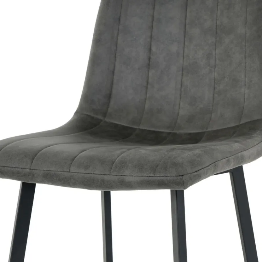 Eetkamerstoel Piet heeft een microleder bekleding. Dit is een stof met een vintage lederlook met zachte grip. De stof is wat wolkerig van kleur, die zorgt voor een warme uitstraling. De antracietgrijze kleur is een makkelijk te combineren tint.