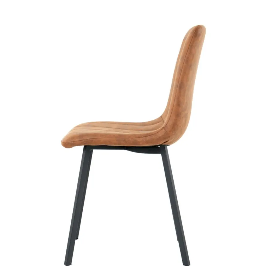 Eetkamerstoel Piet heeft een microleder bekleding. Dit is een stof met een vintage lederlook met zachte grip. De stof is wat wolkerig van kleur, die zorgt voor een warme uitstraling. De cognac kleur is een makkelijk te combineren tint.