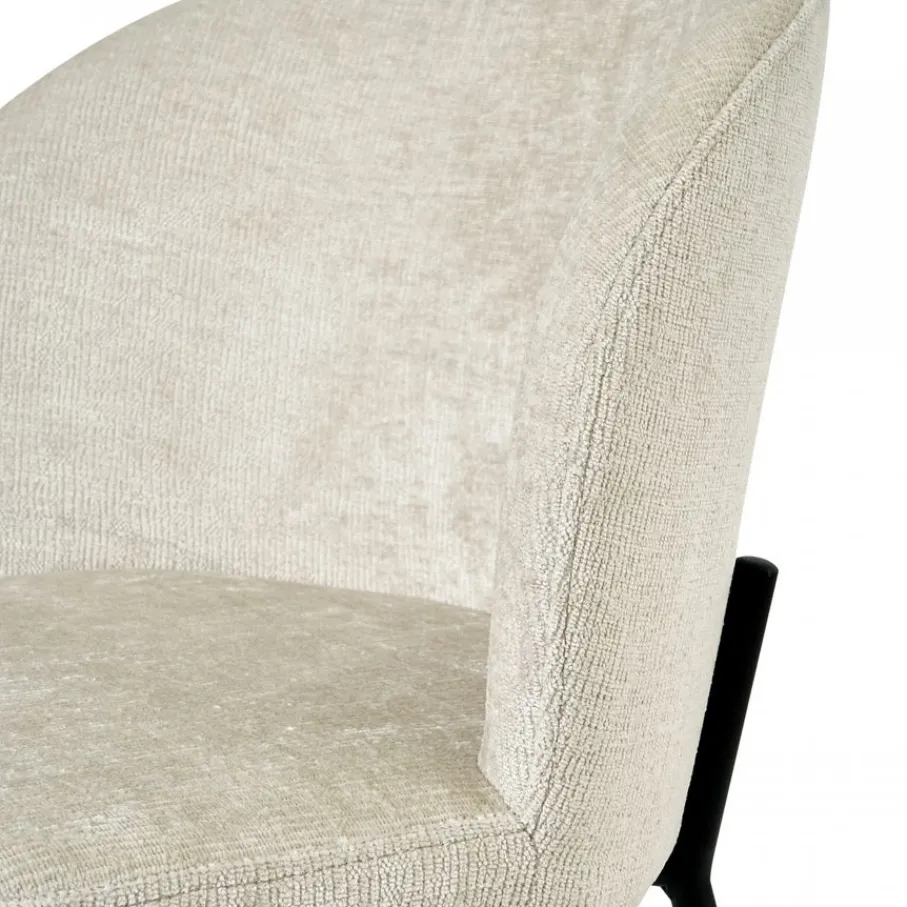 De bekleding van eetkamerstoel Tamar heeft een zacht en aangenaam gevoel en tegelijkertijd een robuust en weelderig uiterlijk. Het materiaal is grof en fluweelzacht. De kleur naturel is een gemêleerde neutrale tint.