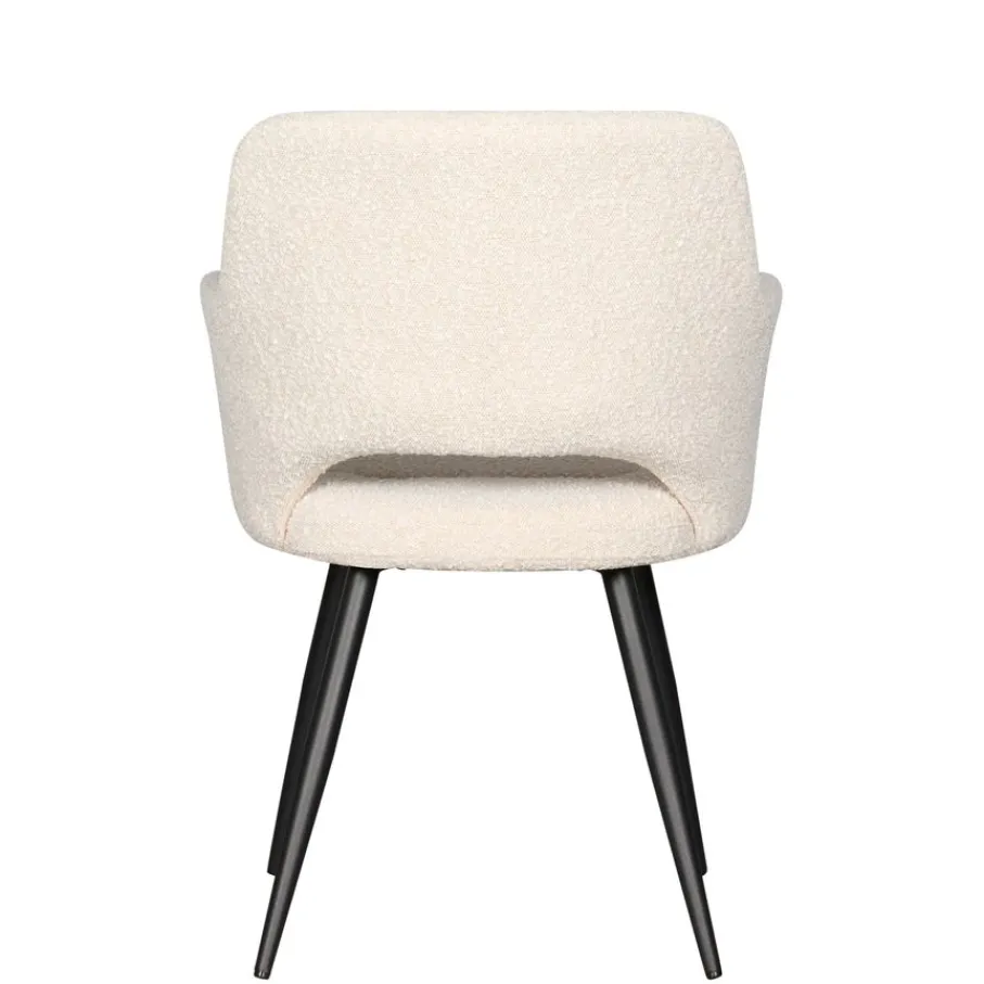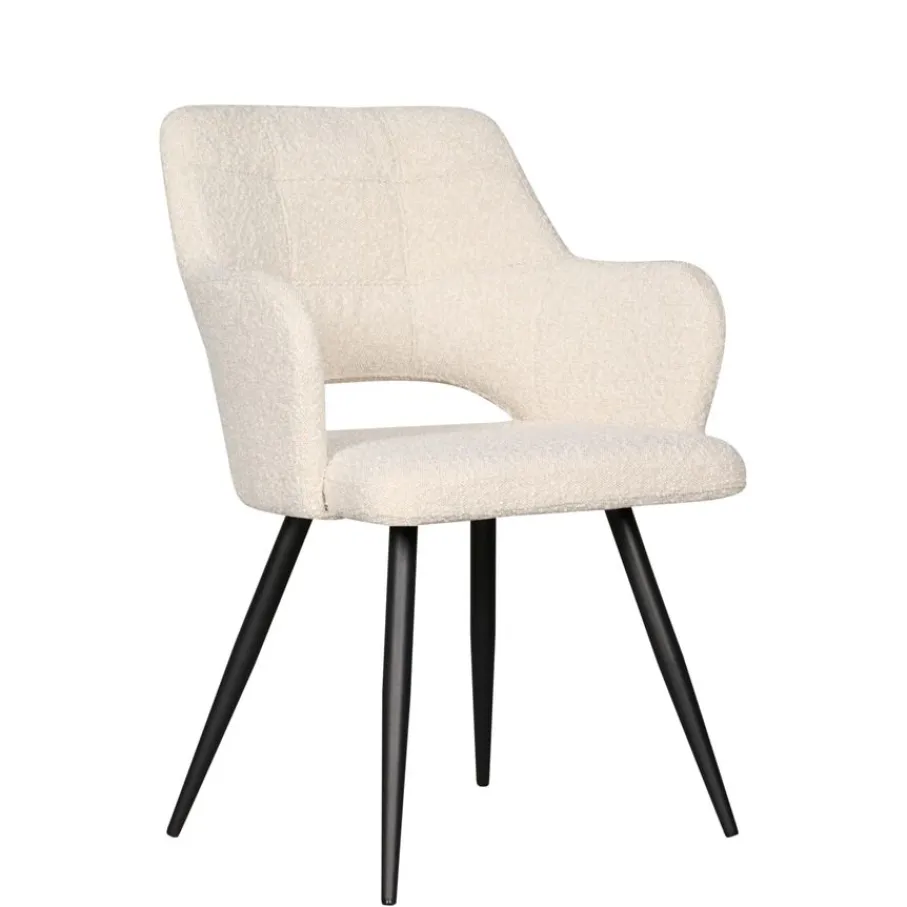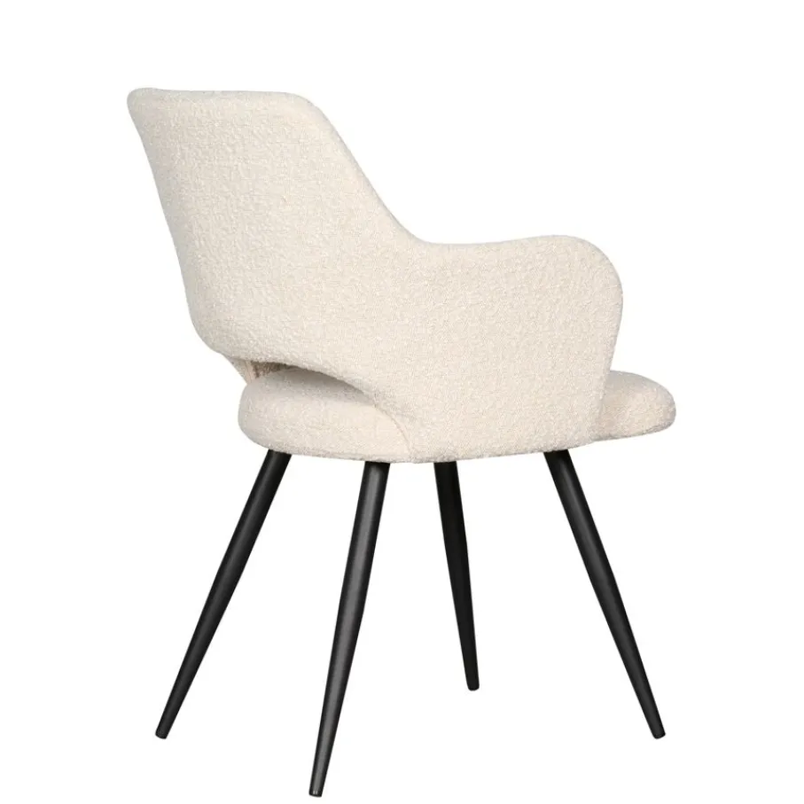 - Omhelzend zitcomfort: De ronde, zachte vormen en armleuningen zorgen voor een heerlijk omsluitende zitervaring, perfect voor lange avonden aan tafel.
