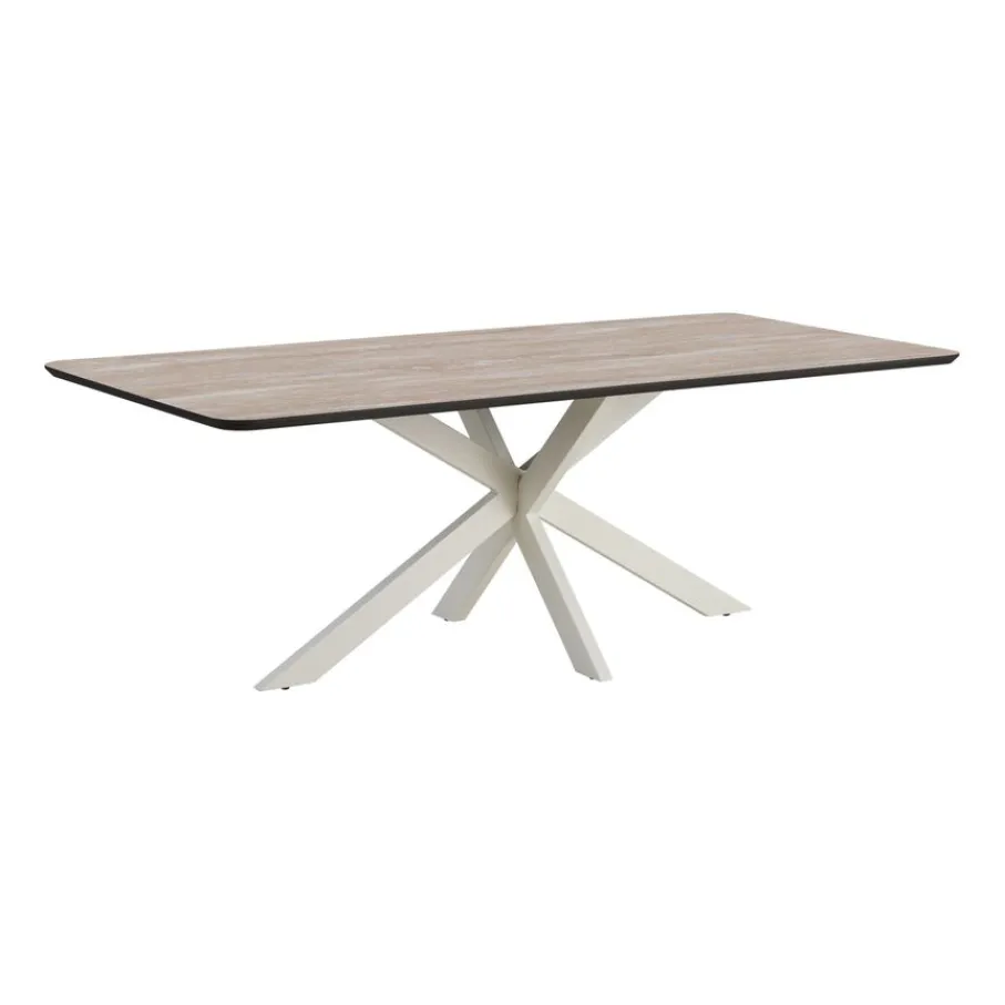- Creëer direct een stijlvolle en moderne sfeer: Met het elegante travertin look blad en de strakke beige kruispoot geef je jouw eetkamer meteen een eigentijdse en luxe uitstraling.