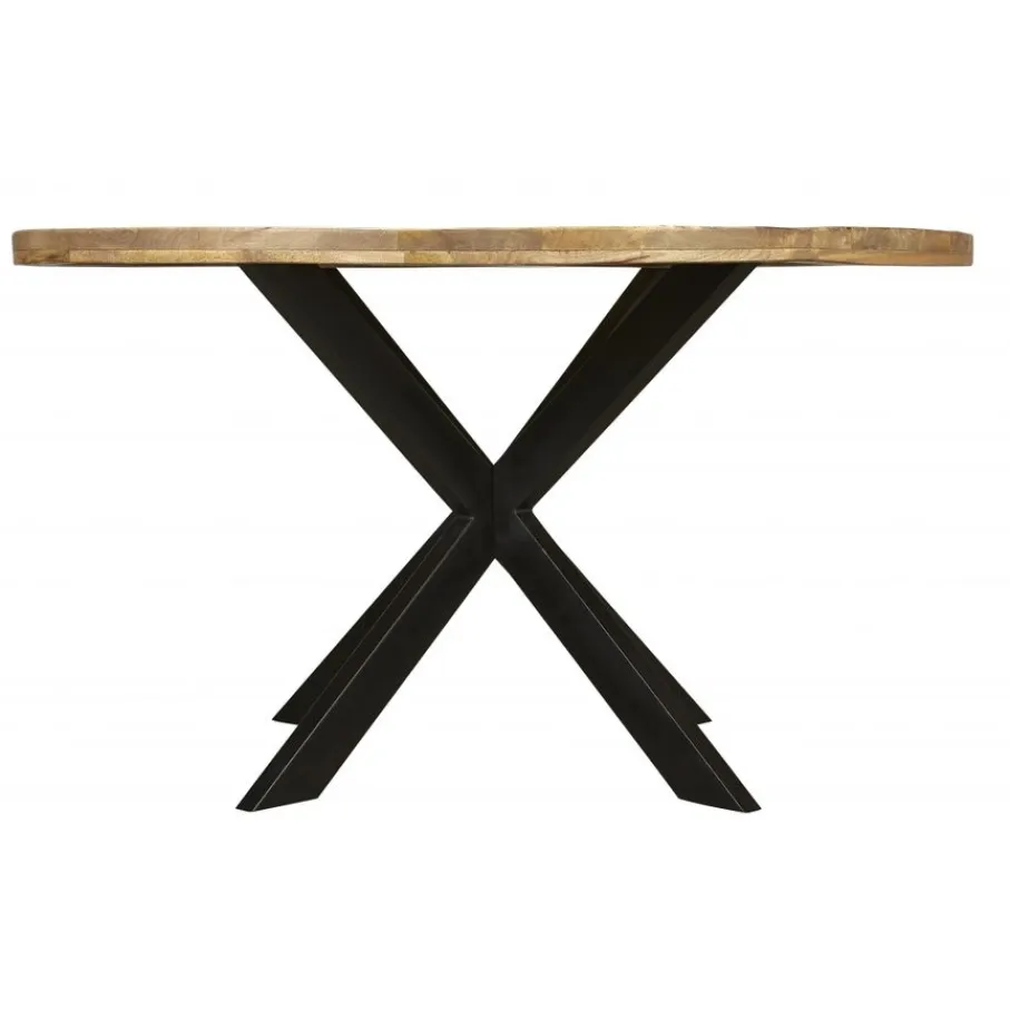 - Een stoer design met karakter: De combinatie van het massieve houten blad en de moderne zwarte spinpoot geeft eettafel Bemmel een unieke, eigentijdse look die de aandacht trekt.