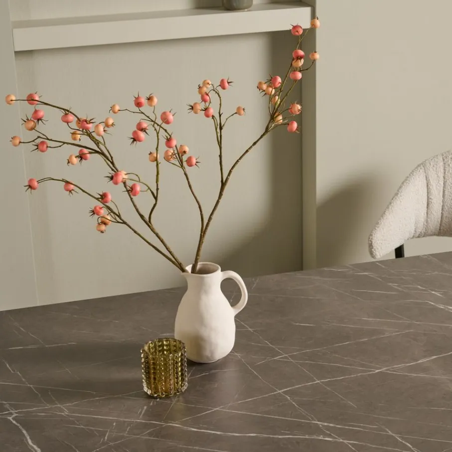 - Robuuste uitstraling met een modern tintje: Het prachtige blad met hoogwaardige bruine steenlook en subtiele lichte aderen geeft je eetkamer een stoere én elegante uitstraling.