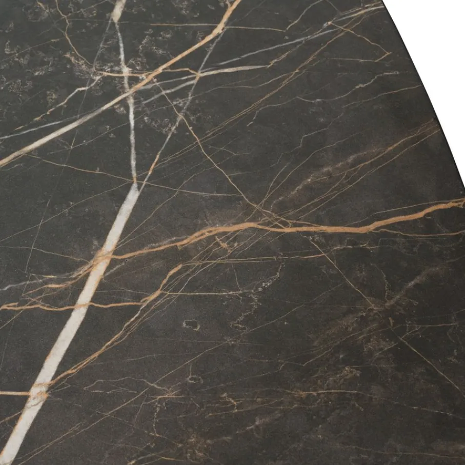 - Ultiem chic met een marmerlook: Het prachtige zwarte blad met verfijnde beige en witte aderen geeft je eetkamer een luxueuze en moderne uitstraling.