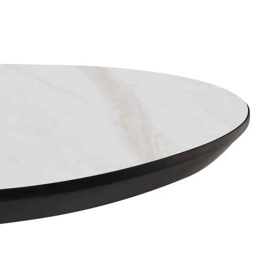 - Een modern designstatement: De strakke zwarte spinpoot van metaal vormt een stoer contrast met het elegante marmerlook blad en maakt Nyborg een echte eyecatcher.