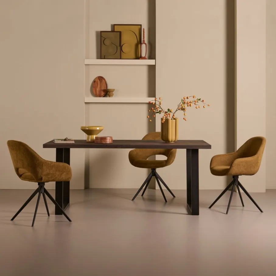 - Een tijdloze blikvanger in je huis: De rechthoekige vorm en de diepbruine kleur ‘Kool’ met zwarte metalen U-poten passen perfect bij verschillende woonstijlen en trends.