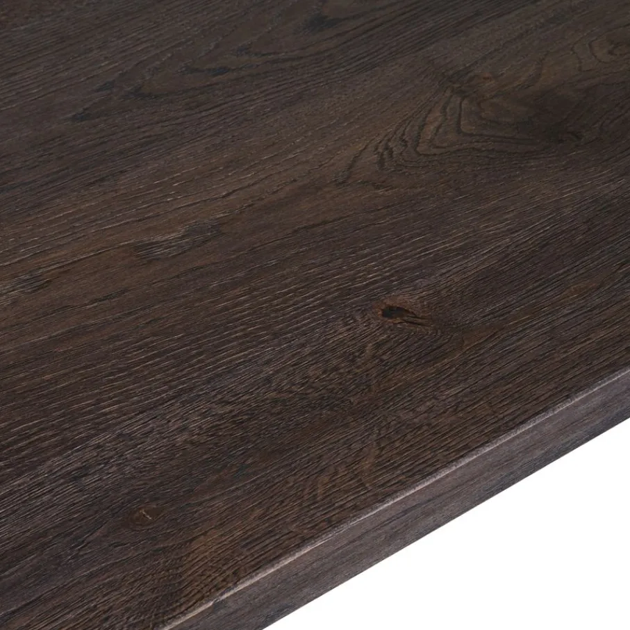 - Geniet van de robuuste kwaliteit: Het dikke blad van 40 mm van geborsteld eikenhout met een matte laklaag voelt solide aan en is beschermd voor al jouw gezellige momenten.