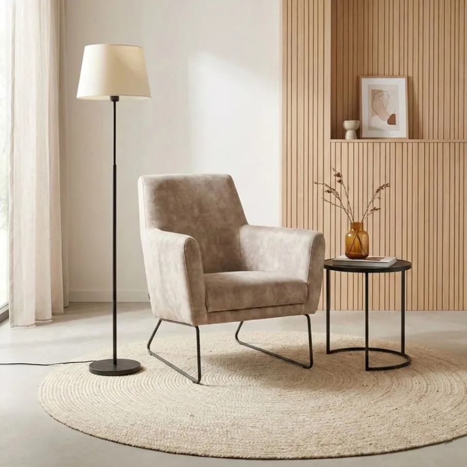 - Stevig en stijlvol fundament: De zwarte metalen sledepoten geven de fauteuil een moderne touch en zorgen voor stabiliteit.