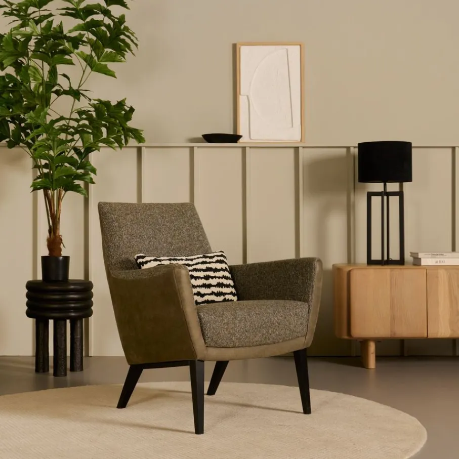 - Een stijlvolle blikvanger die je interieur laat stralen: Met zijn strakke design en unieke two-tone bekleding is deze fauteuil een echte must-have die direct sfeer toevoegt.