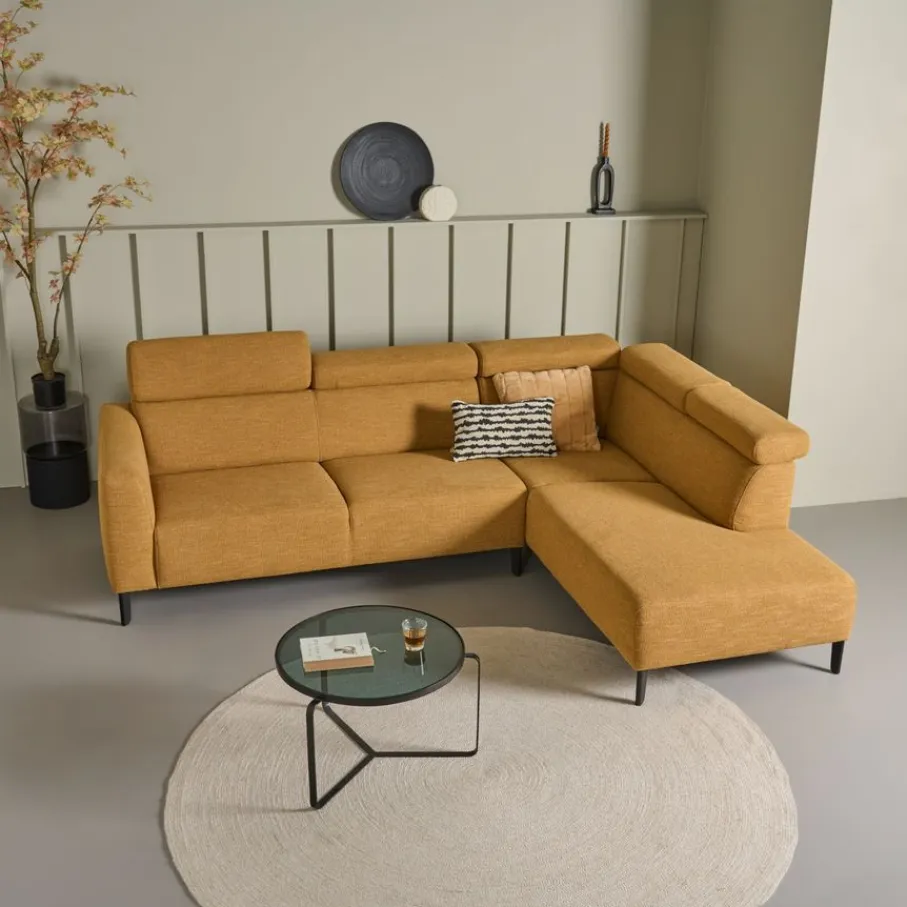 - Hoekbank met divan rechts in okergeel