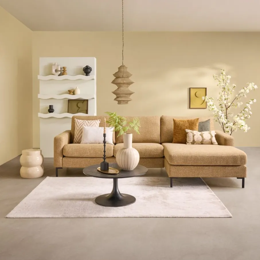- Met zijn strakke vormgeving en hoge metalen poten is deze hoekbank een echte blikvanger die je interieur een eigentijdse touch geeft.