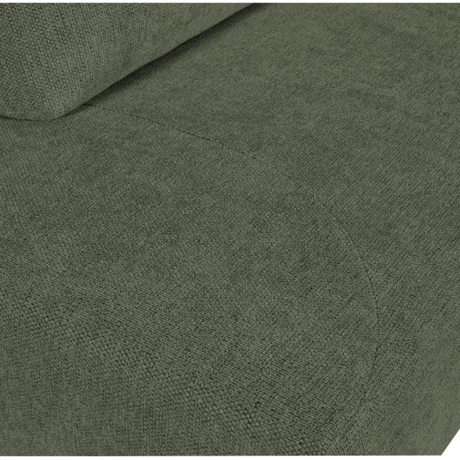 De bank is bekleed met stof Mito, een stof van 90% polyester en 10% nylon.. Een sterke en slijtvaste stof met een robuuste structuur die lekker zacht aanvoelt. De kleur is Hunter, een aardse groentint. Een mooie gemêleerde tint.