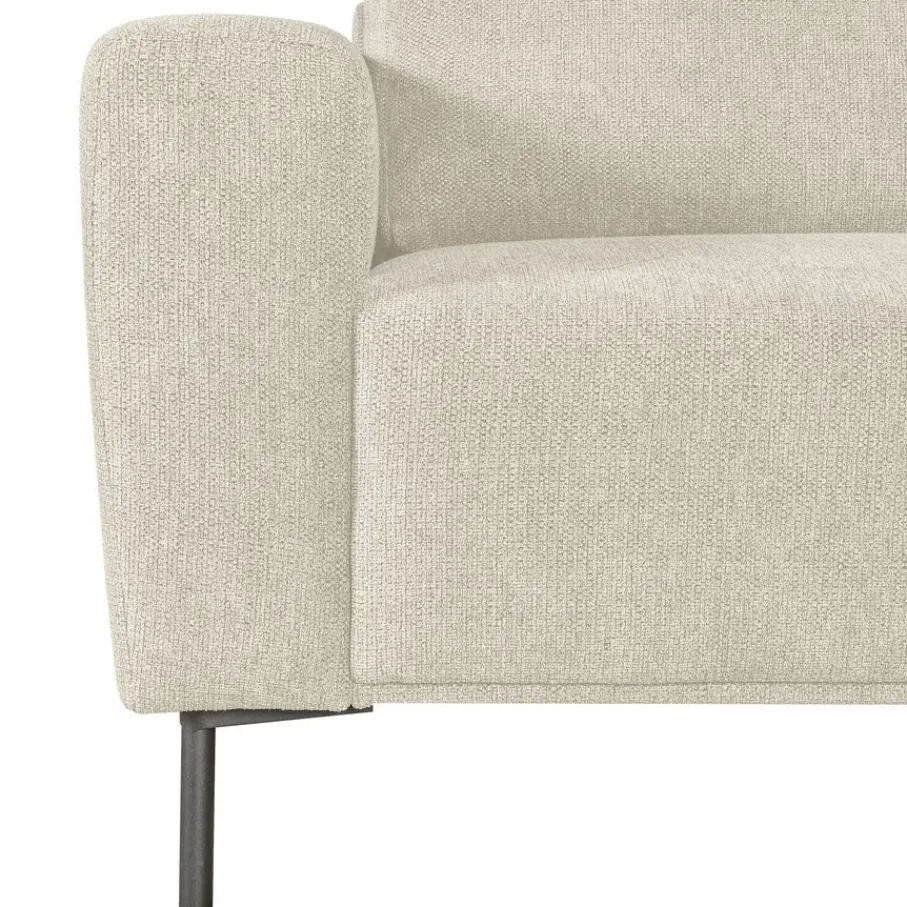 De bank is bekleed met stof Mito, een stof van 90% polyester en 10% nylon. Een sterke en slijtvaste stof met een robuuste structuur die lekker zacht aanvoelt. De kleur is Naturel, een gemêleerde licht beige kleur.