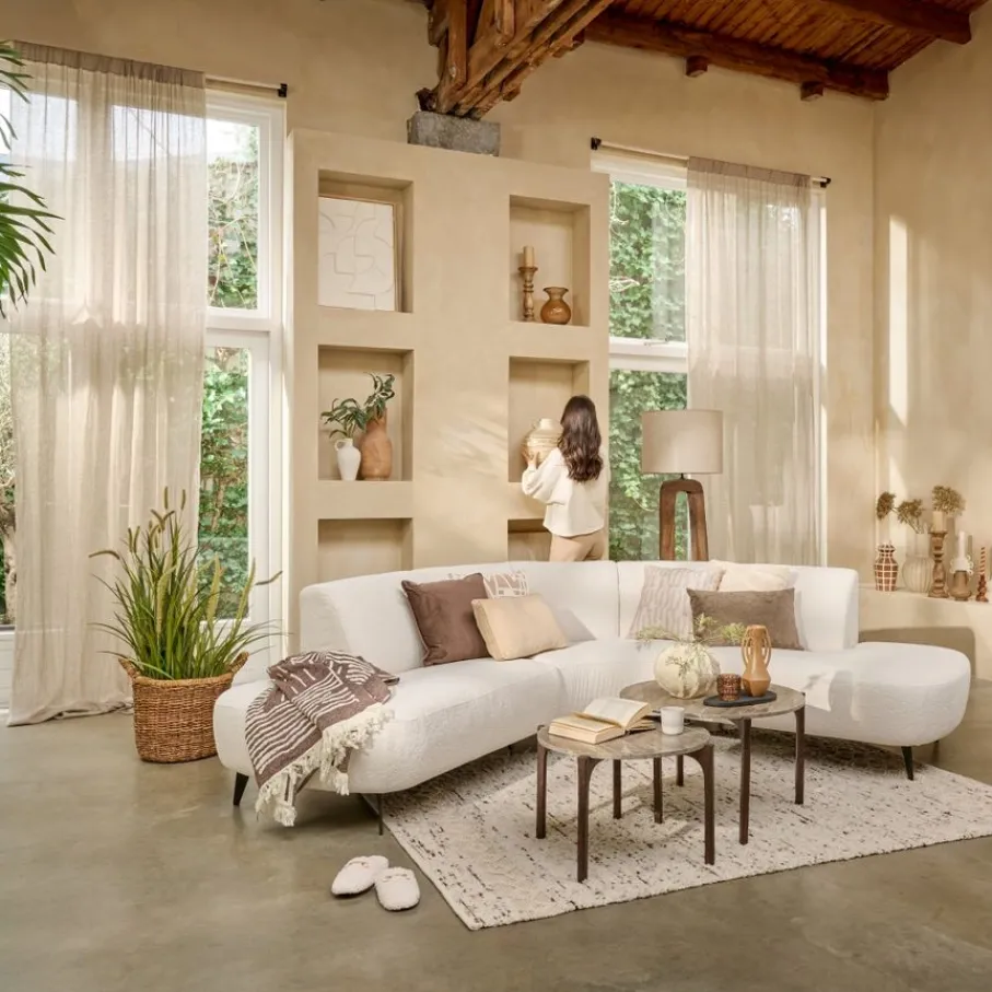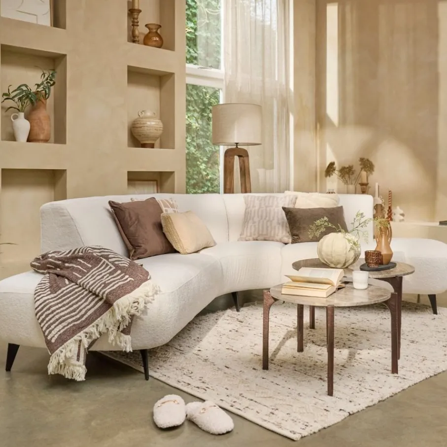 - Omarm de nieuwste woontrends met deze hoekbank die jouw woonkamer direct een stijlvolle en uitnodigende sfeer geeft dankzij de opvallende ronde vormen.