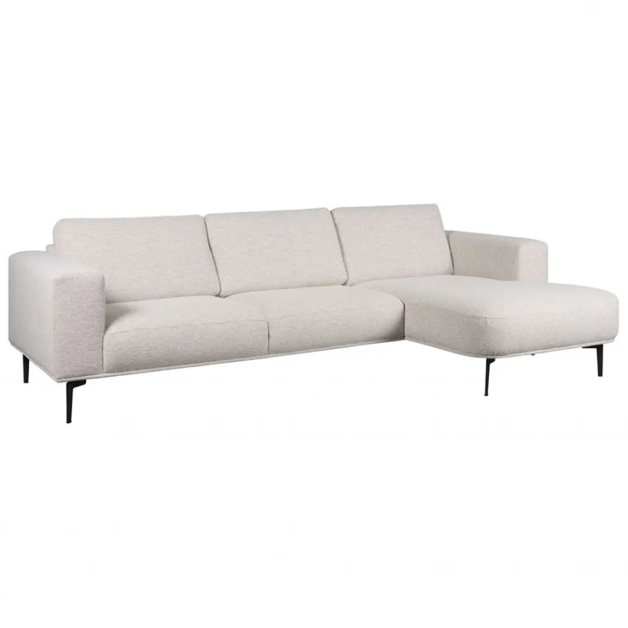 Met een bouclé stoffering voelt hoekbank Fame zacht en uitnodigend aan. De stof heeft een rijke structuur en is gemaakt van 95% polyester en 5% nylon Dit zorgt niet alleen voor een aangename grip, maar maakt er ook een sterke bekleding van die lang mooi blijft. De kleur Linen is een crème tint met subtiele kleurnuances.
