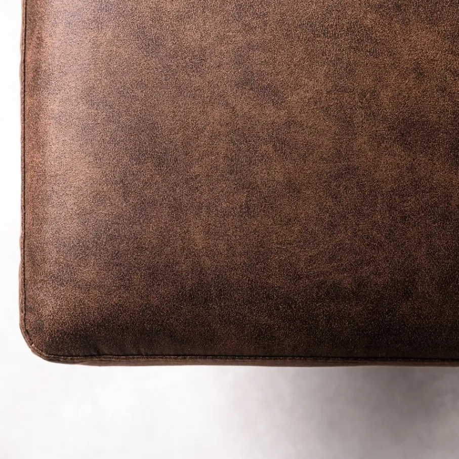 De bekleding van de Kinslee bank is stof Savannah. Deze microleder stof voelt zacht aan en zorgt voor zowel een robuuste, als luxe uitstraling. De bruine kleur is een tint die makkelijk combineert.
