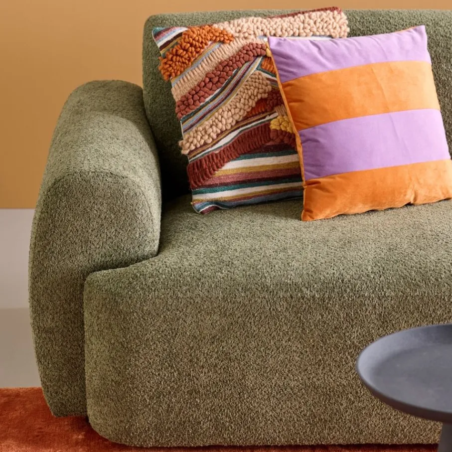 - De zachte bouclé bekleding met rijke structuur voelt niet alleen heerlijk aan, maar geeft je woonkamer ook direct een warme en luxe uitstraling.