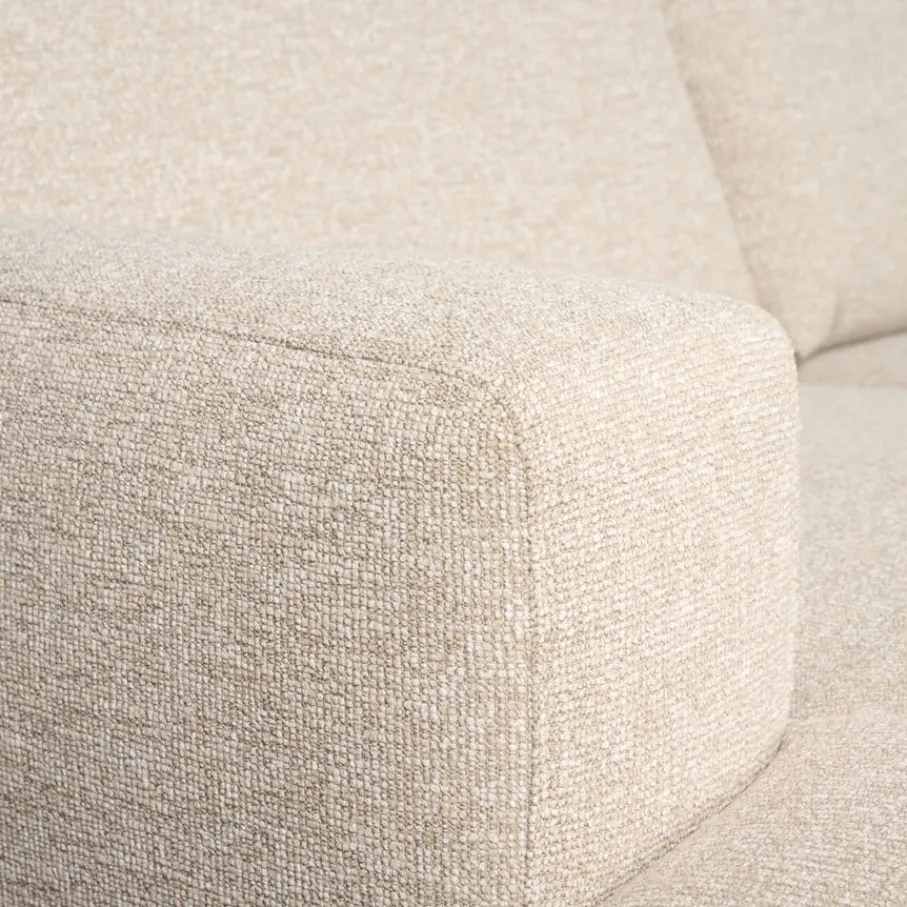 Niet alleen vanbinnen, ook van buiten is hoekbank Vibe een echte topper. De aangename en zachte bekleding heeft een robuuste weving en is gemaakt van 100% polyester. De beige kleur is een gemêleerde tint die makkelijk te combineren is. Het nodigt uit tot lekker loungen en is bovendien gemaakt om lang mooi te blijven. De zwart metalen poten geven de bank een moderne touch en zorgen voor een stabiele basis.