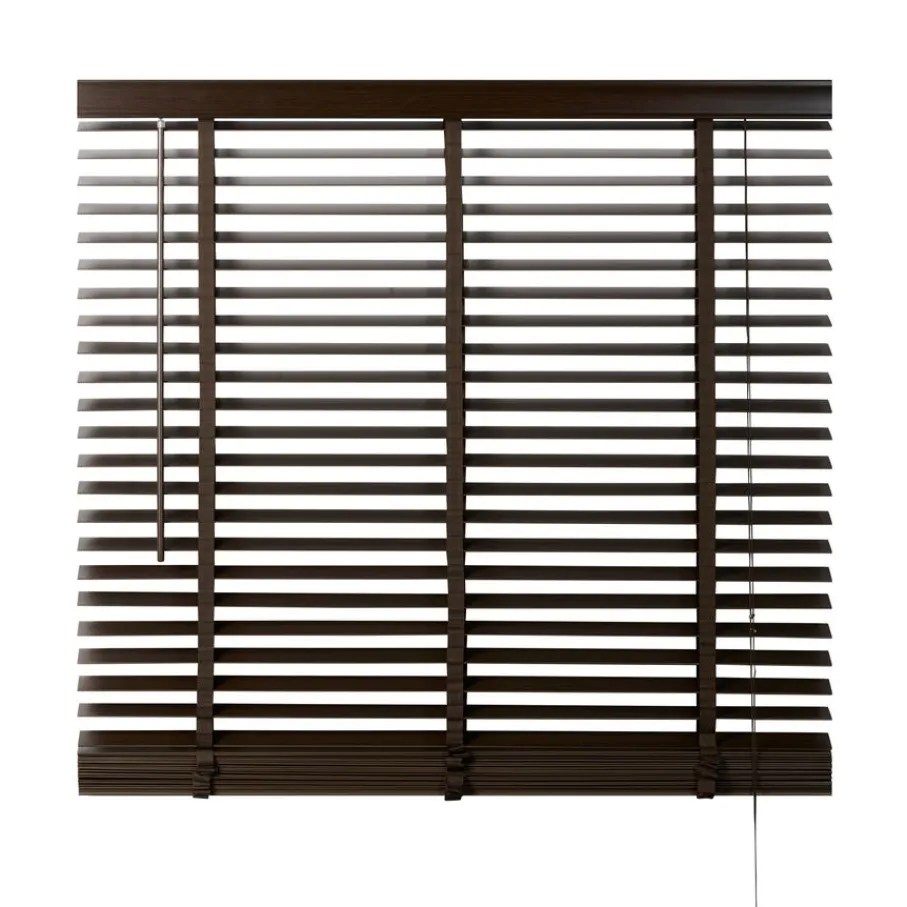 - Breng direct een warme, natuurlijke sfeer in huis met deze prachtige donkerbruine houten jaloezie, ideaal voor een knusse uitstraling.