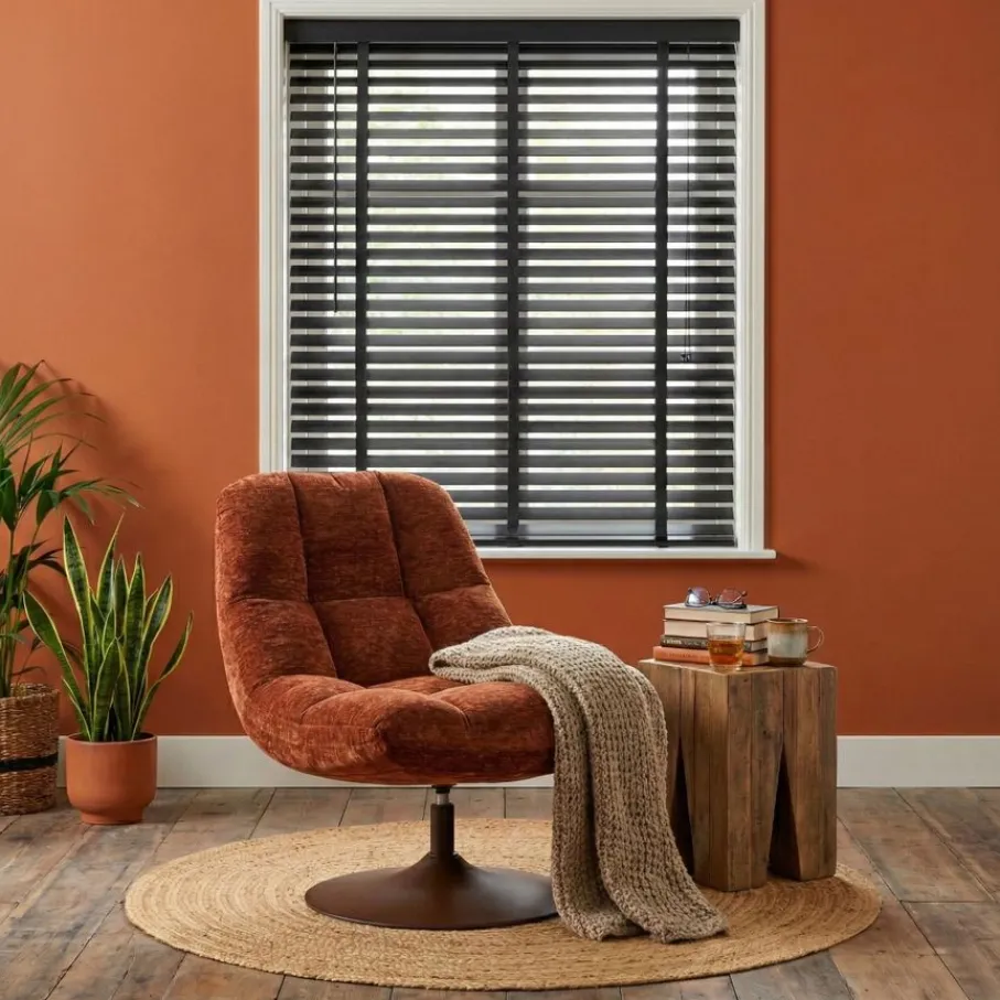 Een zwarte jaloezie in je interieur is een echte sfeermaker. De donkere kleur zorgt voor een knusse en stijlvolle ambiance. Het is mooi om het zwart hier en daar te herhalen. Dat kan een mooie zwarte kast zijn, maar ook zwarte lampen, of zwarte woonaccessoires. Deze look past goed in een robuuste woonstijl met veel hout en planten. En ook in een minimalistische stijl met grijs en contrasterend wit. Een zwarte houten jaloezie geeft er een sfeervolle en moderne twist aan.