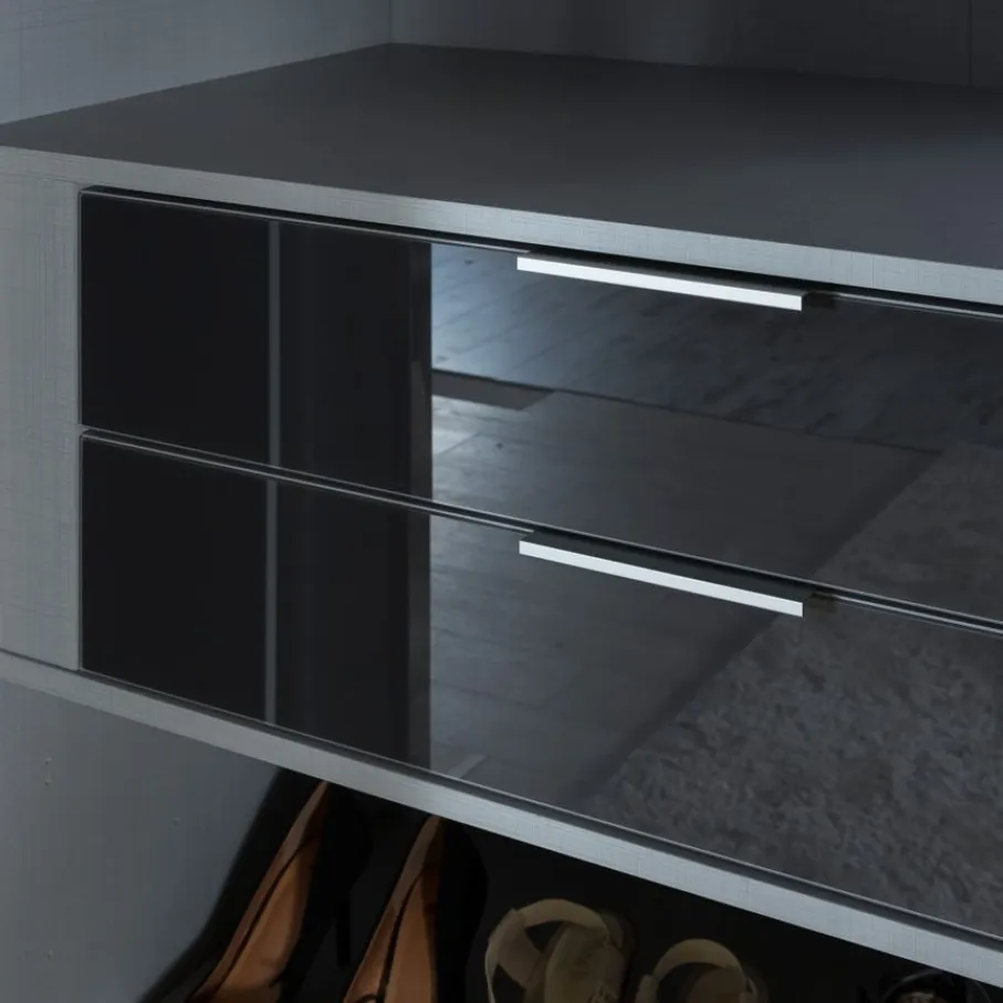 - Luxe uitstraling: De donkere glossy ladefronten en strakke metalen handgrepen geven je kast meteen een chique en moderne touch.