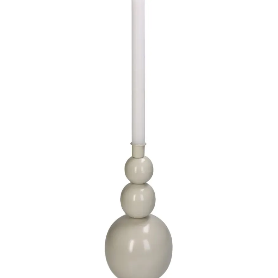 Wat een sfeermaker, deze kandelaar Diek! Met zijn strakke, ronde vormen van metaal in een zachte ivoorkleur voegt hij direct warmte toe aan je interieur. Plaats er een mooie dinerkaars in en geniet van het gezellige licht dat door je kamer danst. Perfect voor een avondje bankhangen of een diner met vrienden. Creëer jouw perfecte ambiance met kandelaar Diek.