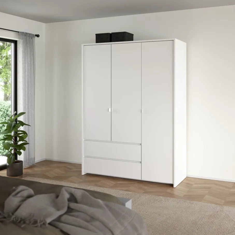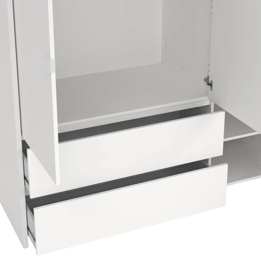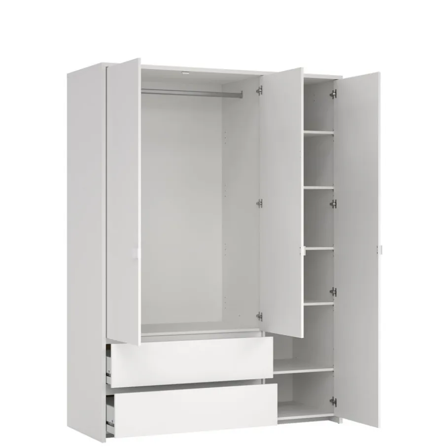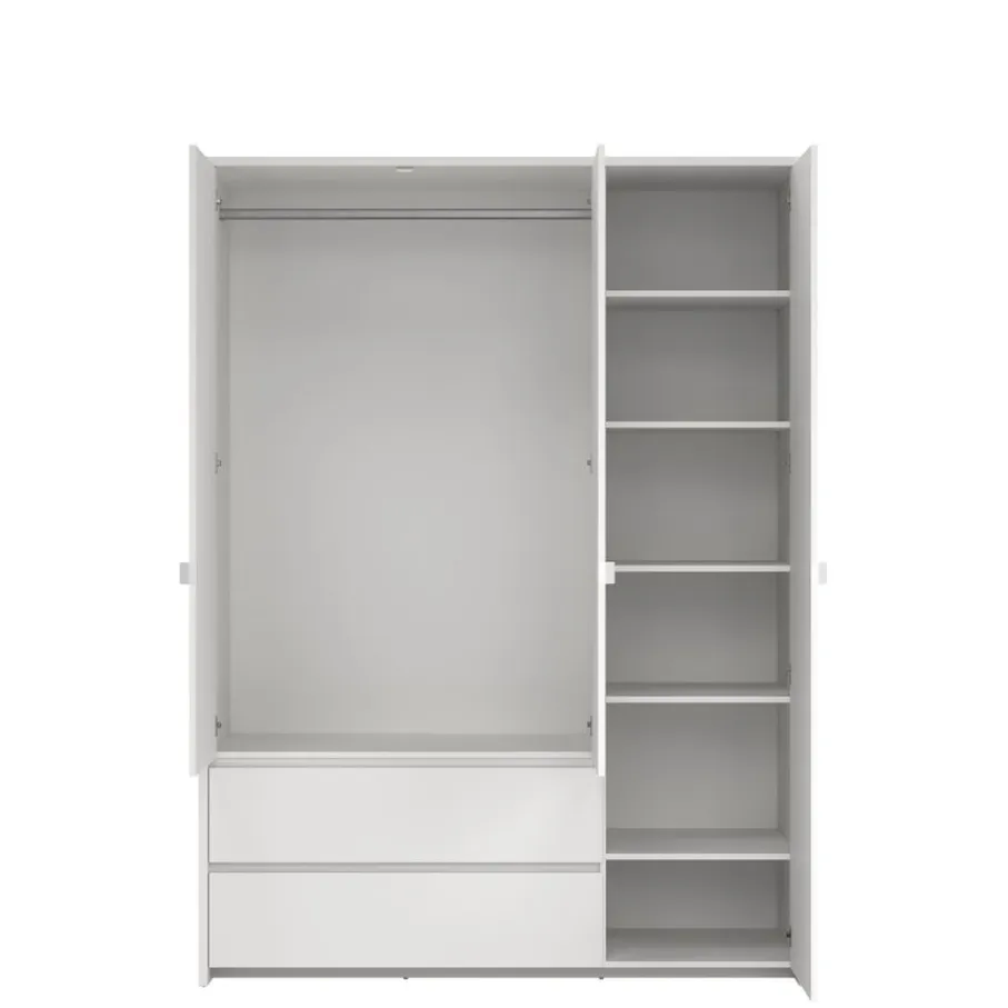 Atlanta is de perfecte opbergoplossing met 3 deuren en 2 brede lades. In de kast zitten 6 legplanken, waarvan 5 verstelbaar en één vast. Met een combinatie van hangruimte en legplanken biedt kledingkast Atlanta flexibele opbergmogelijkheden om je kleding georganiseerd en toegankelijk te houden.