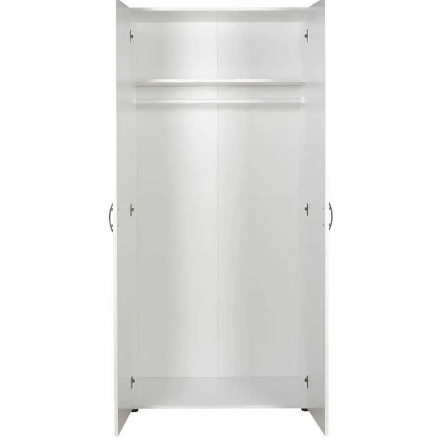 De kast heeft 1 ruim vak met daarin 1 legplank en 1 roede. De deuren zijn voorzien van half ovale handgrepen met een metal look.