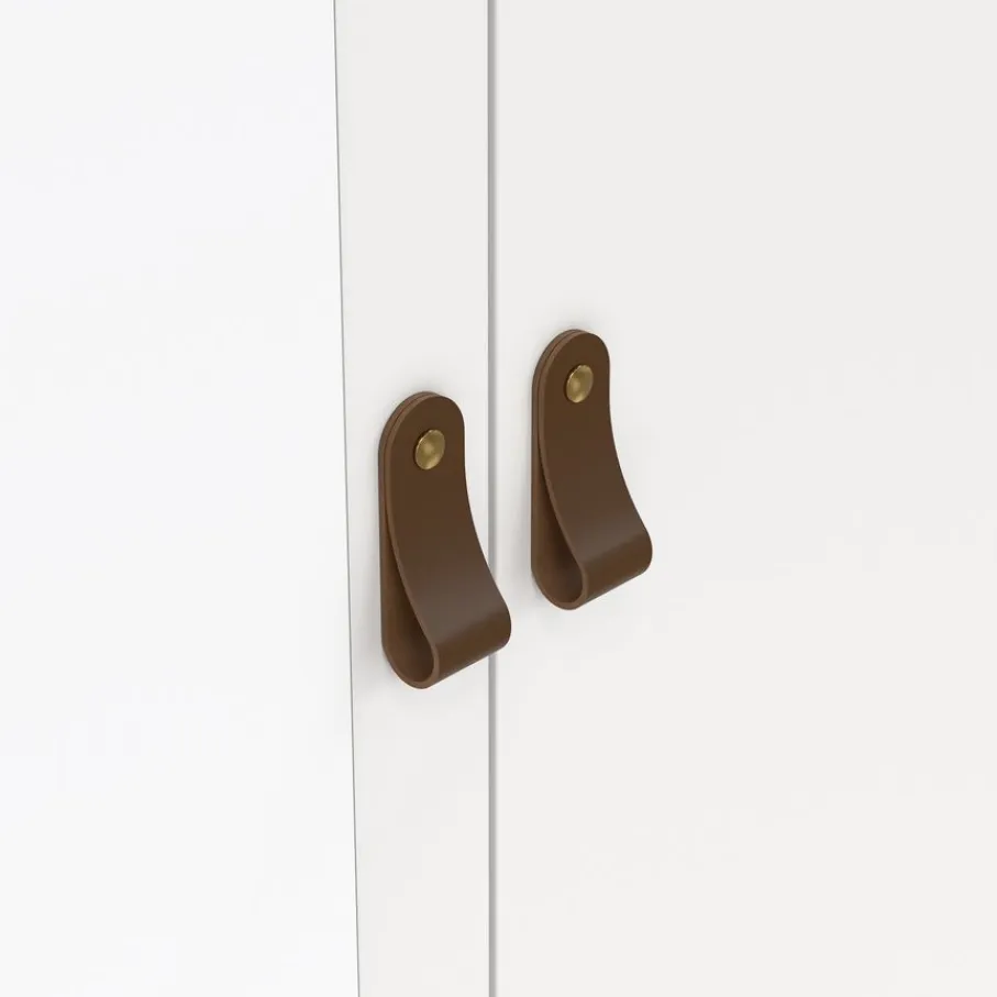 - Personaliseer je kast precies zoals jij wilt met de keuze uit twee sets trendy handgrepen: leren lussen of metalen knoppen.