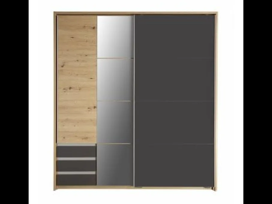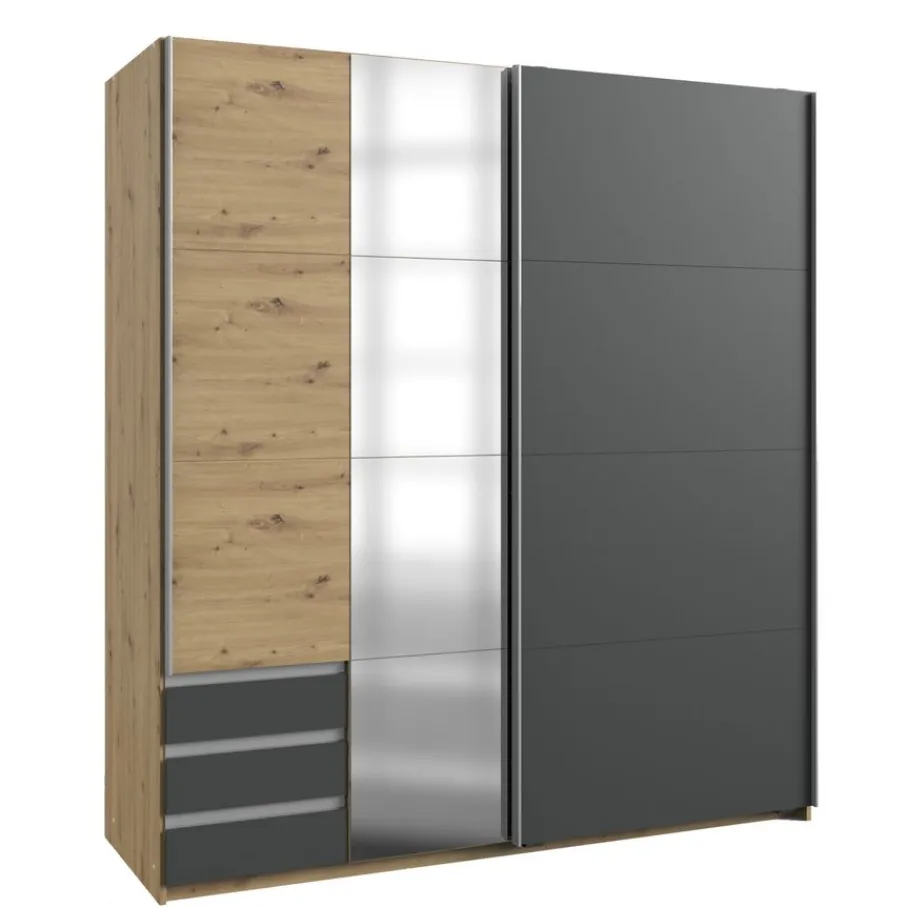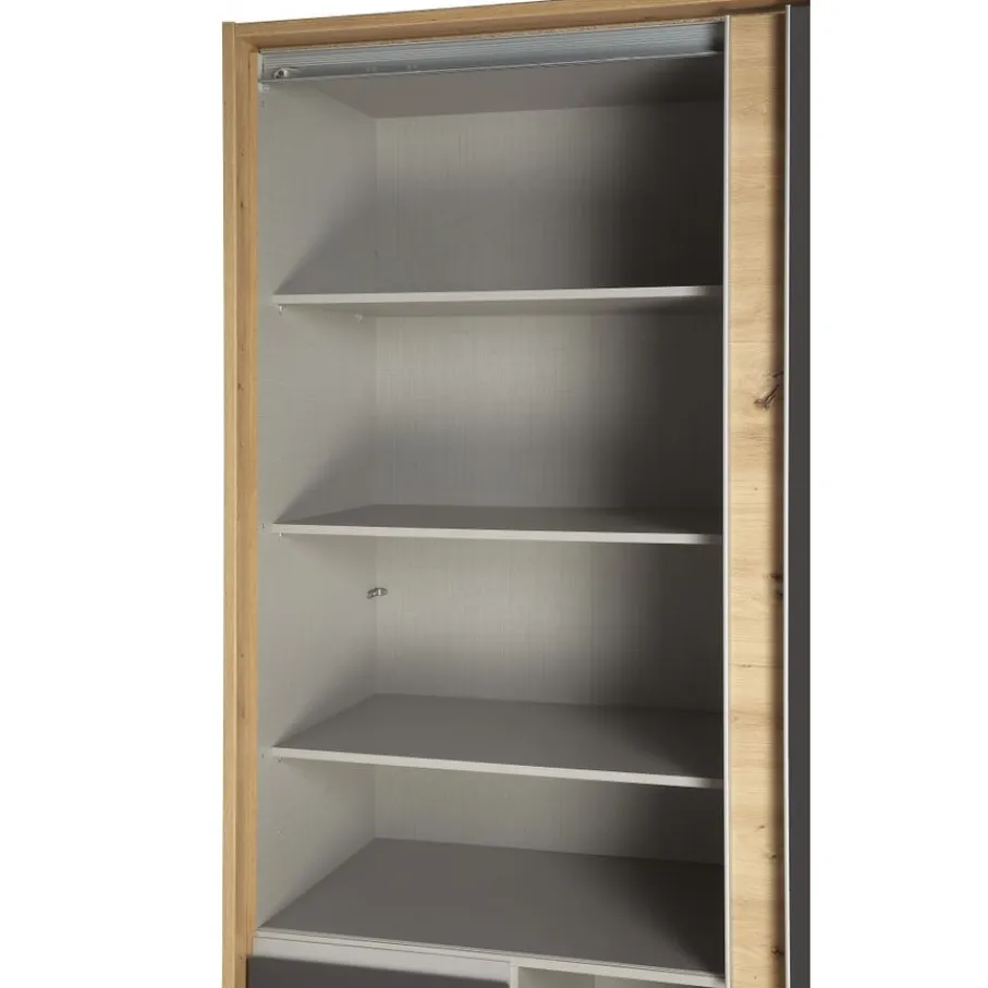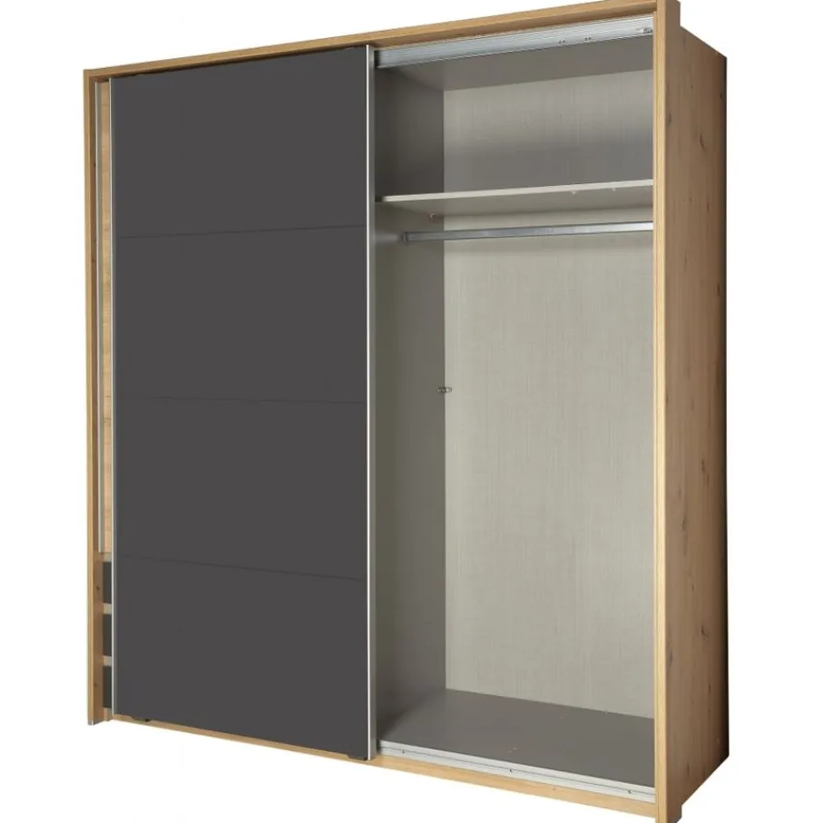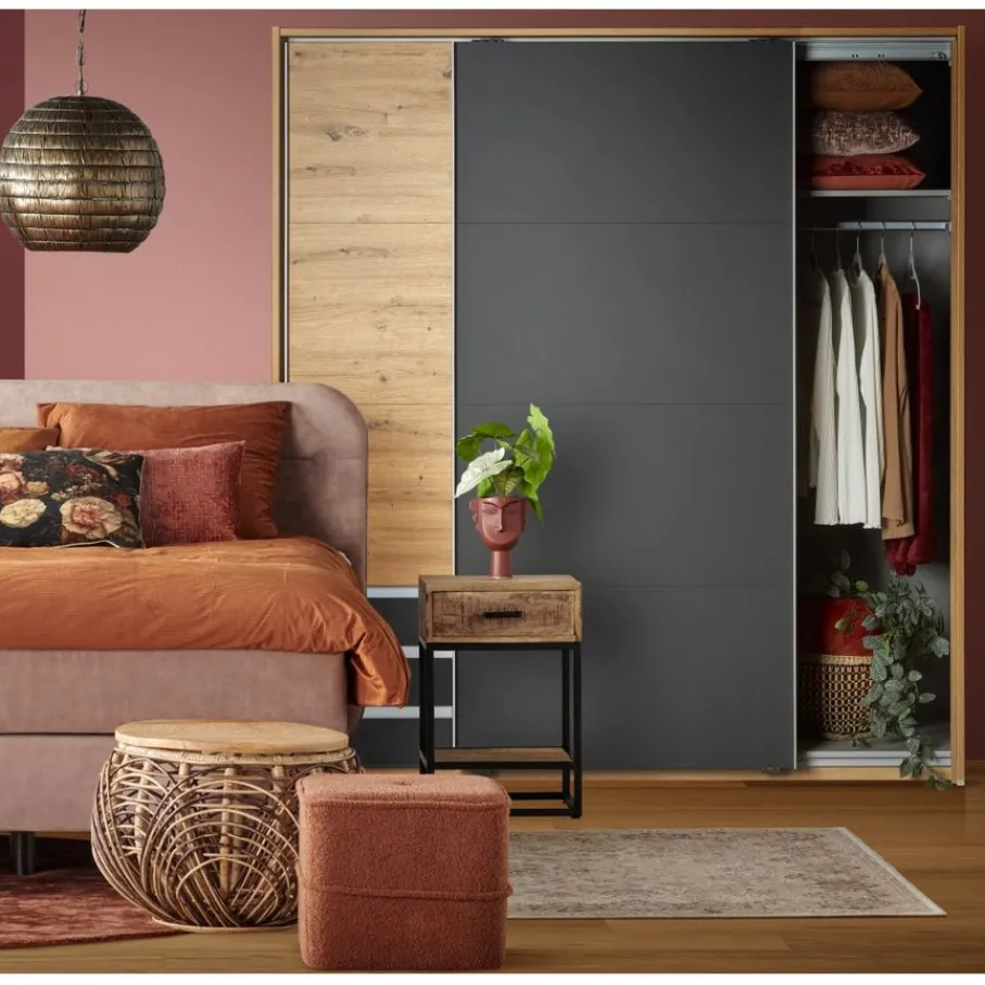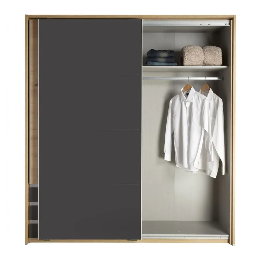- Geef je slaapkamer direct een stijlvolle upgrade met deze eigentijdse kledingkast die eiken houtlook combineert met modern grafiet.