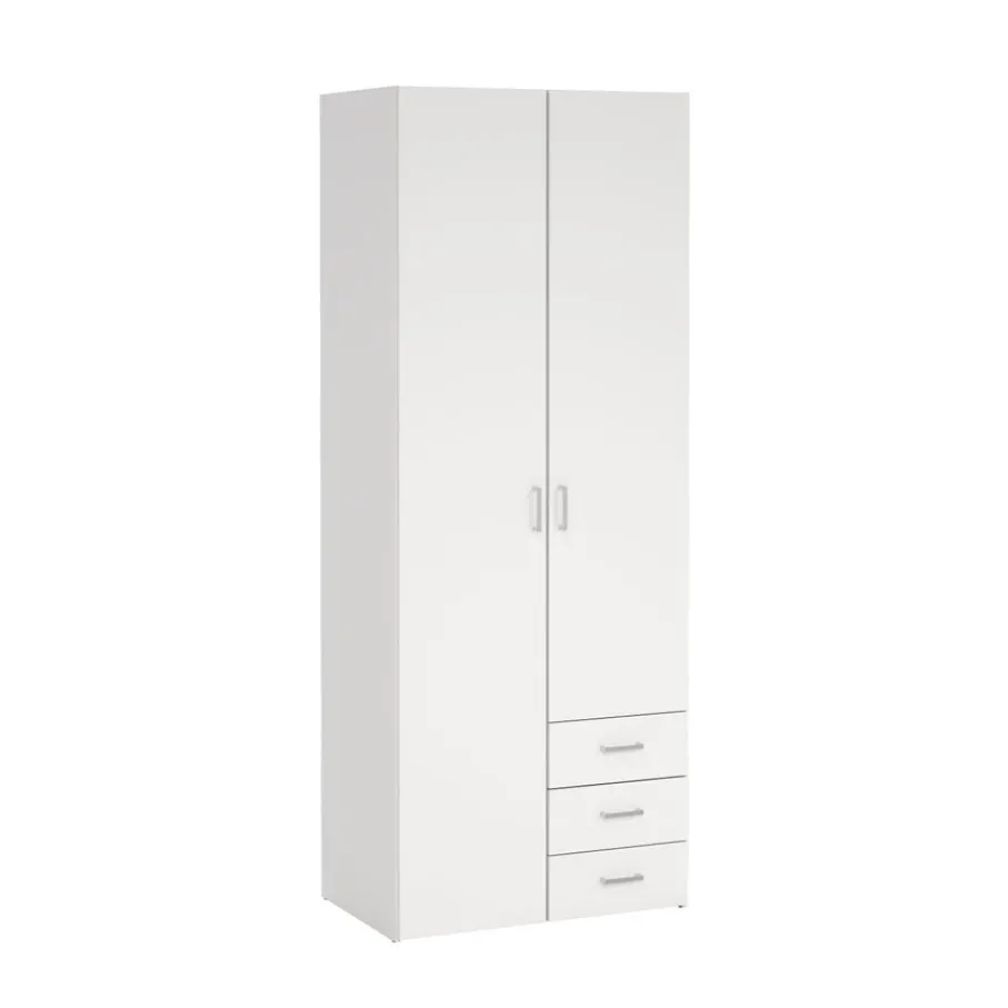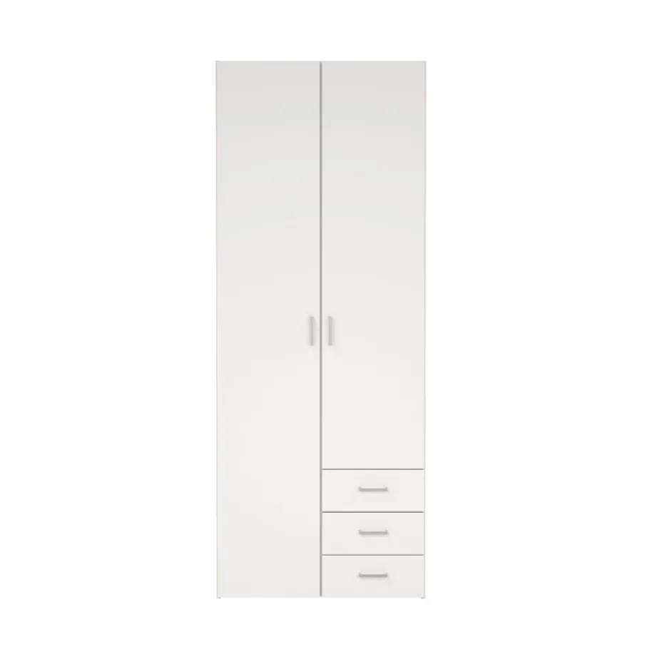 Kledingkast Harper is een praktische toevoeging voor elke kamer. Achter de deuren vind je een handige indeling: aan de ene kant een roede om al je kleding netjes op te hangen met erboven een plank en daarnaast drie legplanken voor extra opbergruimte. Verder zijn er ook nog 3 lades en zo berg je alles overzichtelijk op, en is jouw kamer altijd netjes.
