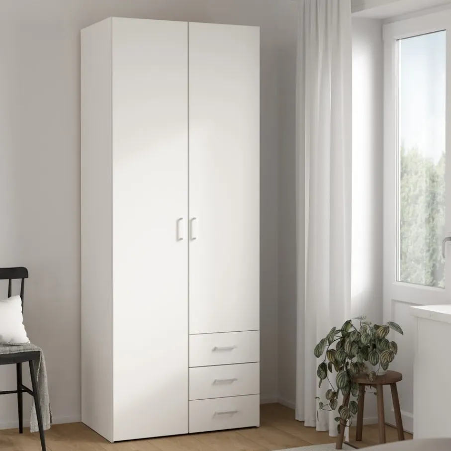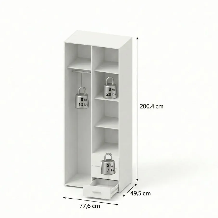 - Super slim ingedeeld met een roede voor hangkleding, handige legplanken en maar liefst drie ruime lades.