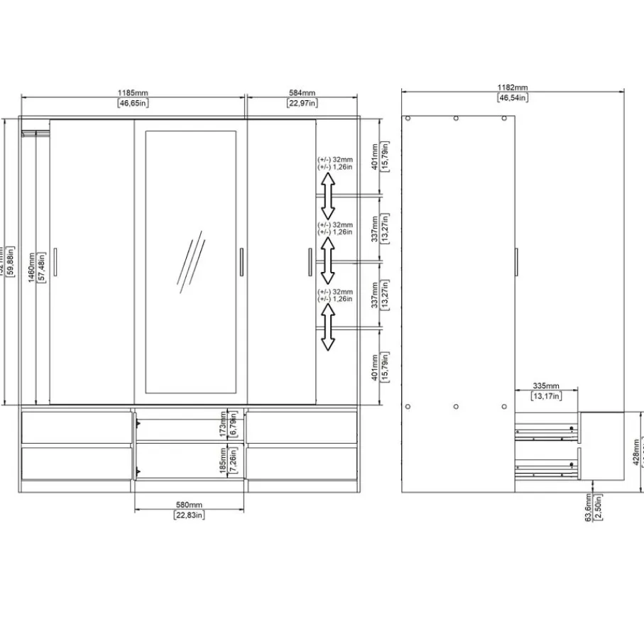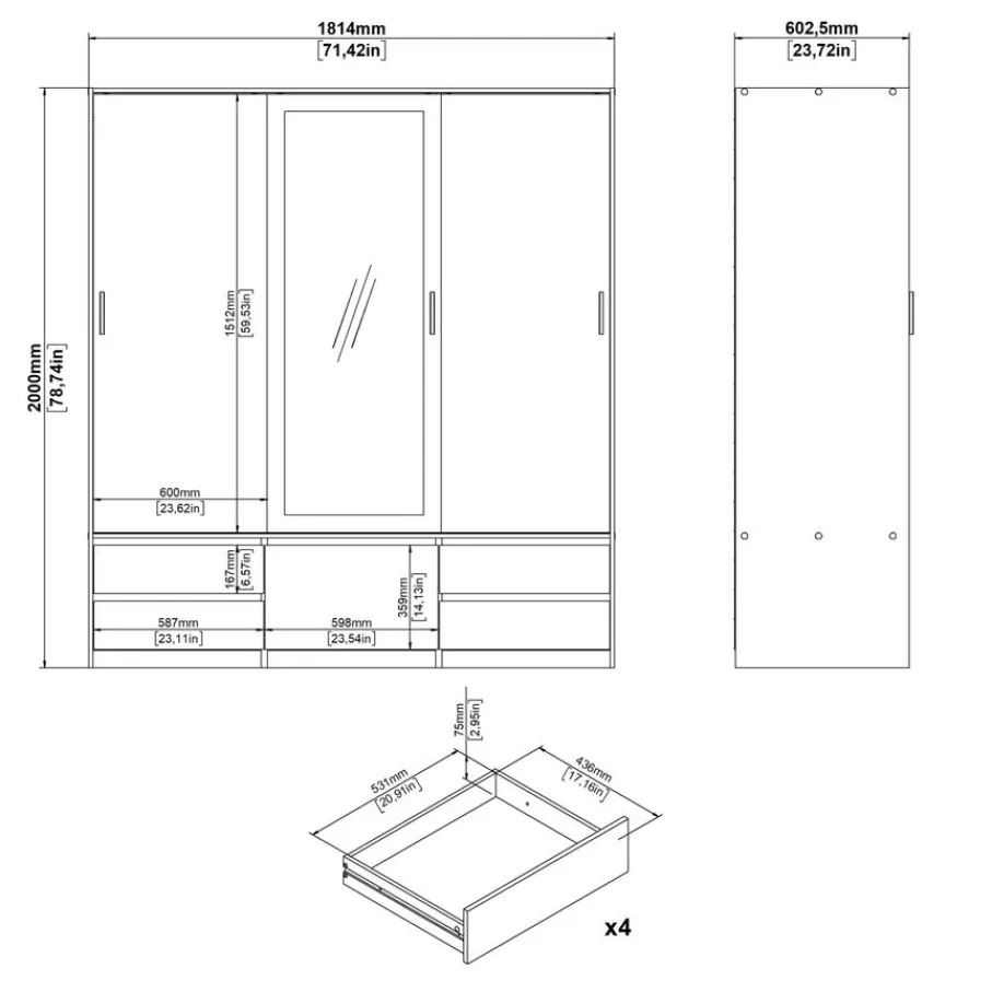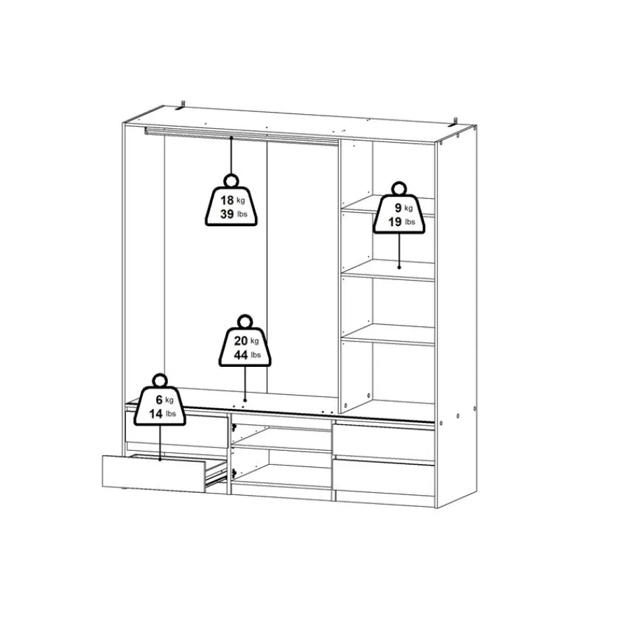 - Houd al je kleding perfect georganiseerd met een handige indeling van een roede, legplanken en maar liefst vier ruime lades voor extra opberggemak.