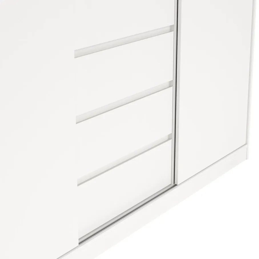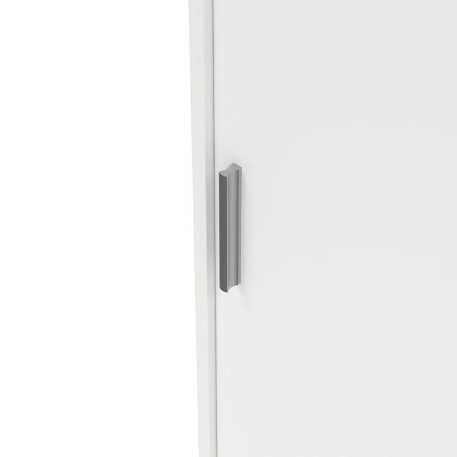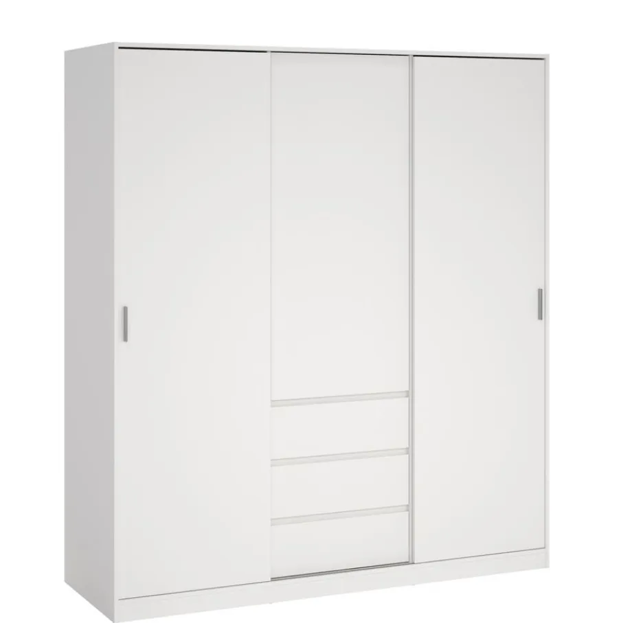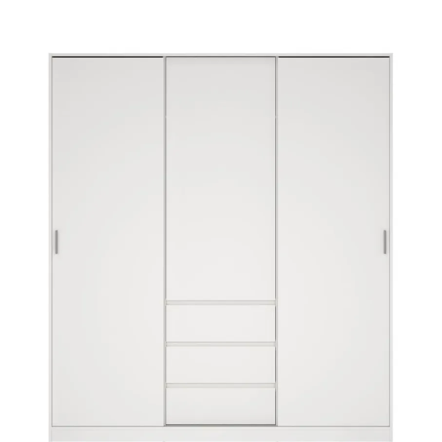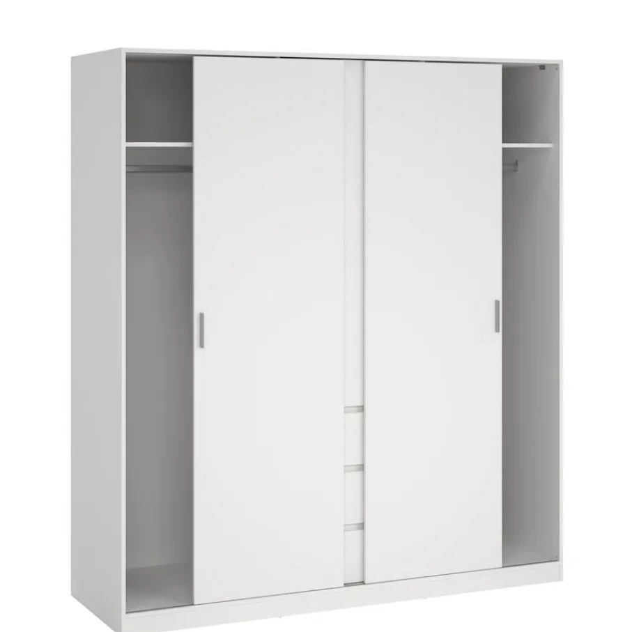 Luna beschikt over twee schuifdeuren, een draaideur en drie lades. Het interieur bevat twee kledingroedes, twee verstelbare legplanken en drie vaste legplanken. Zo biedt kledingkast Luna de perfect mix van hang- en legruimte, met handige lades bovendien. De schuifdeuren hebben kunststof handgrepen met een RVS look. De draaideur en lades zijn greeploos.